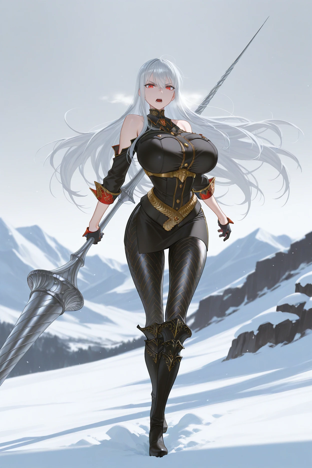 Trigger word is "slvra" and "silver hair, very long hair, red eyes" is required.