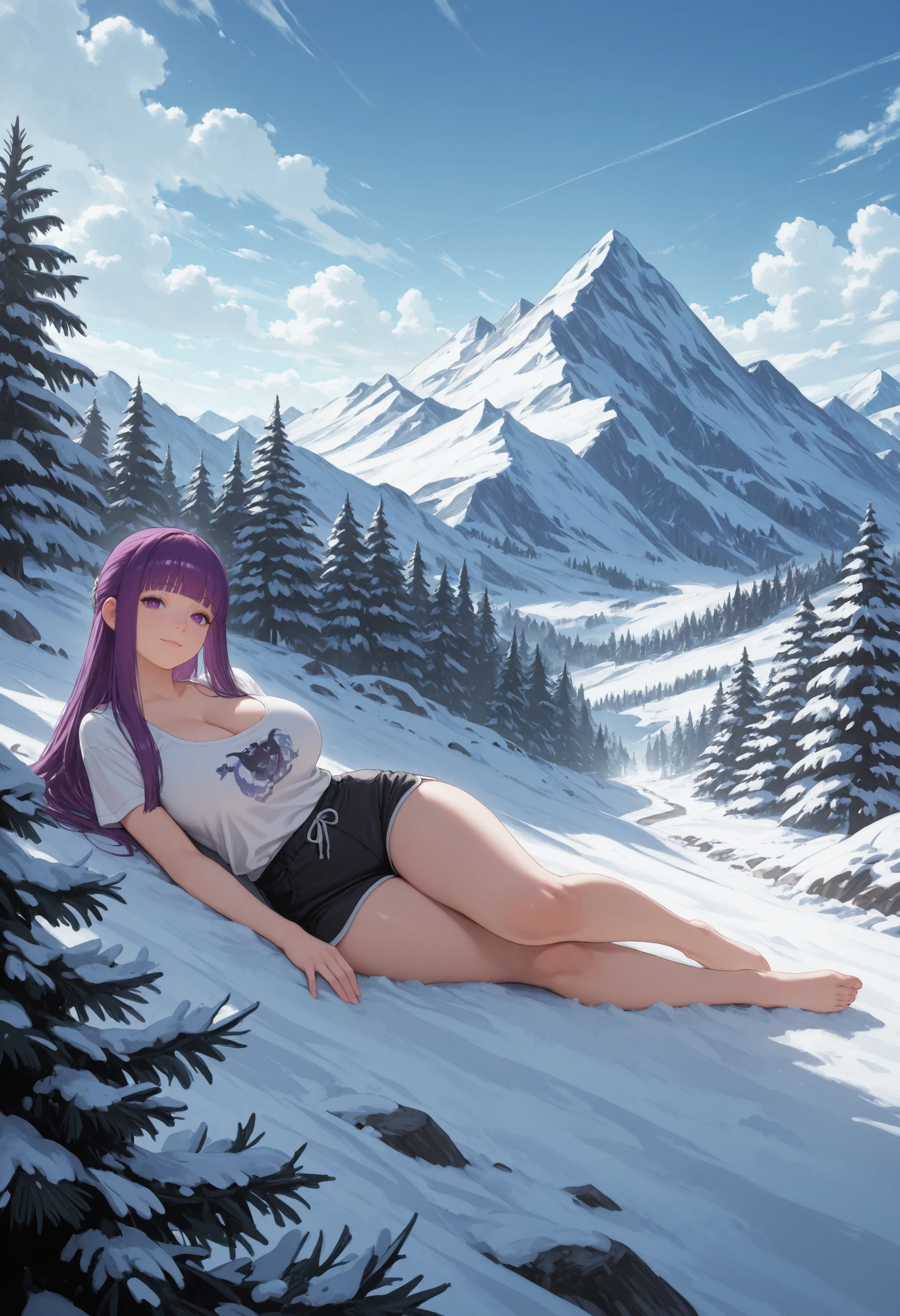 (Positive Prompts) lynfern, ?????????????, purple eyes, very long hair, purple hair, sidelocks, blunt bangs, long bangs, half updo,