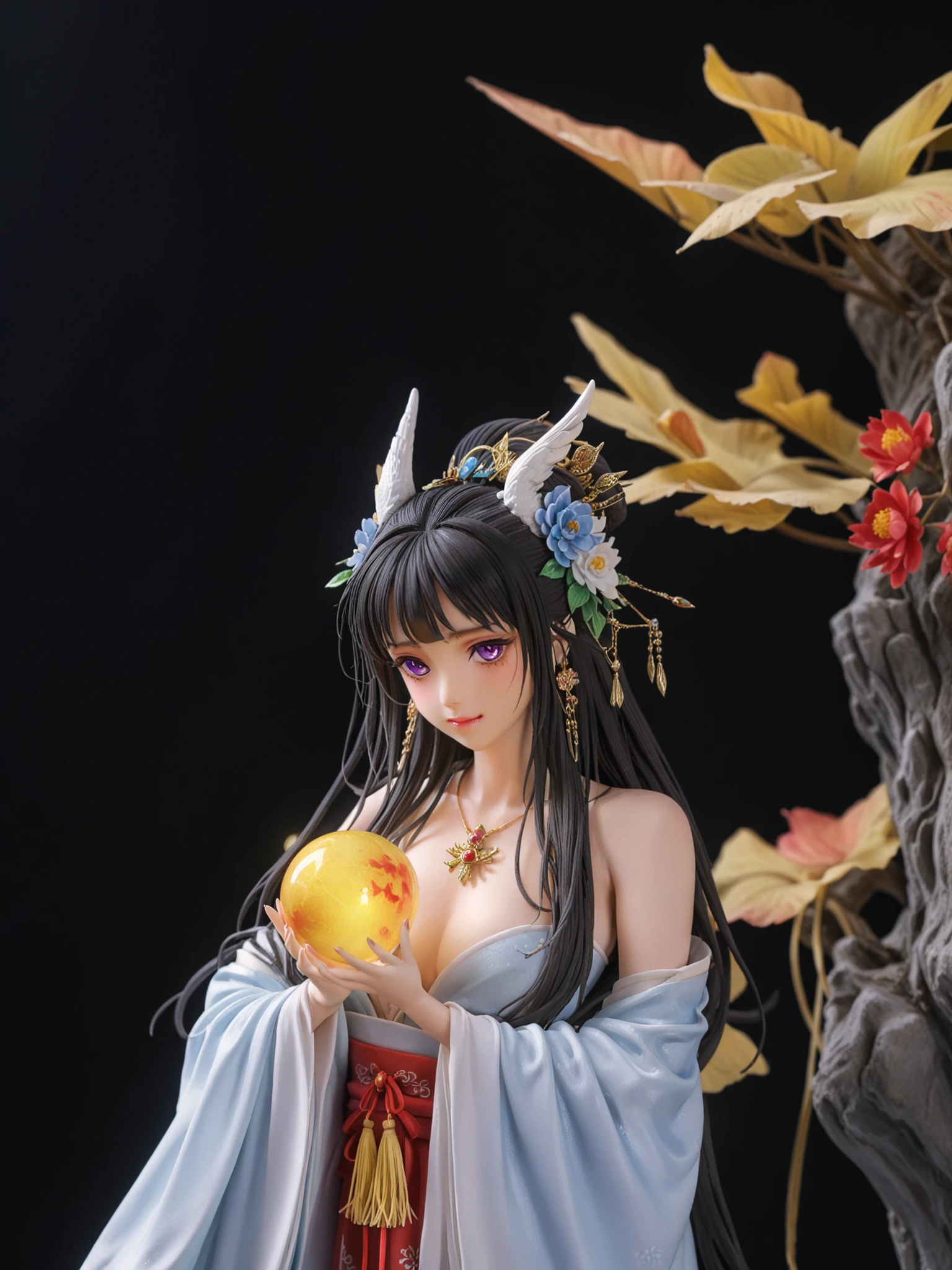 这是根据中国的翻糖大师的风格训练的翻糖风格模型。不同于泥塑,塑胶模型,翻糖人偶独有的珠光反光被完美的还原了。加之原本大师华丽的风格,让整个模型同时是一个华丽的古装模型。无处不透露了优雅。
