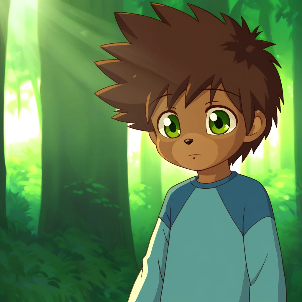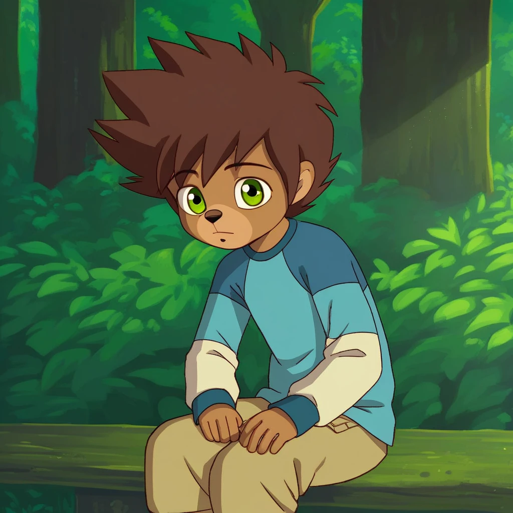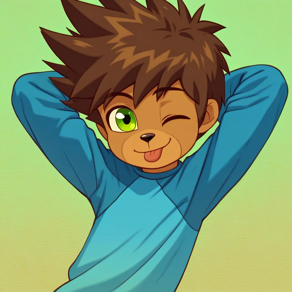 alfred_h. brown hair, green eyes, spiked hair, long sleeves