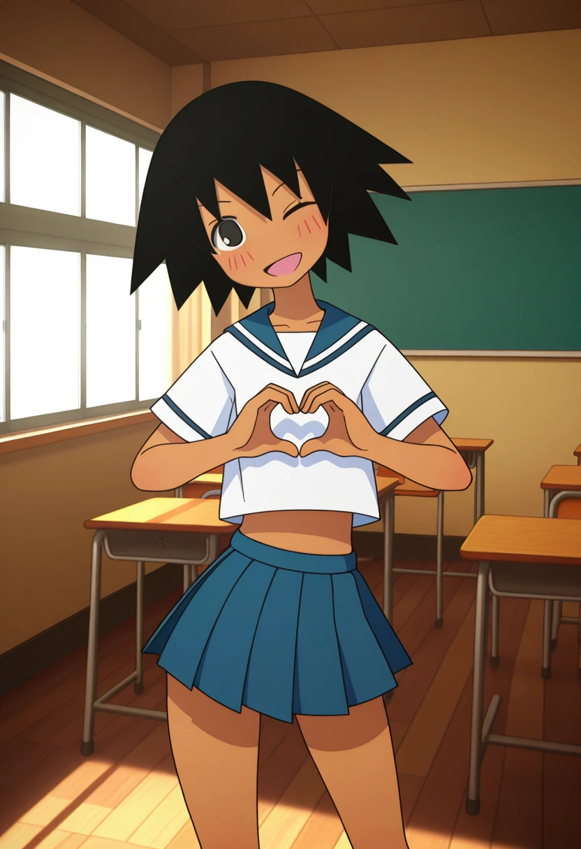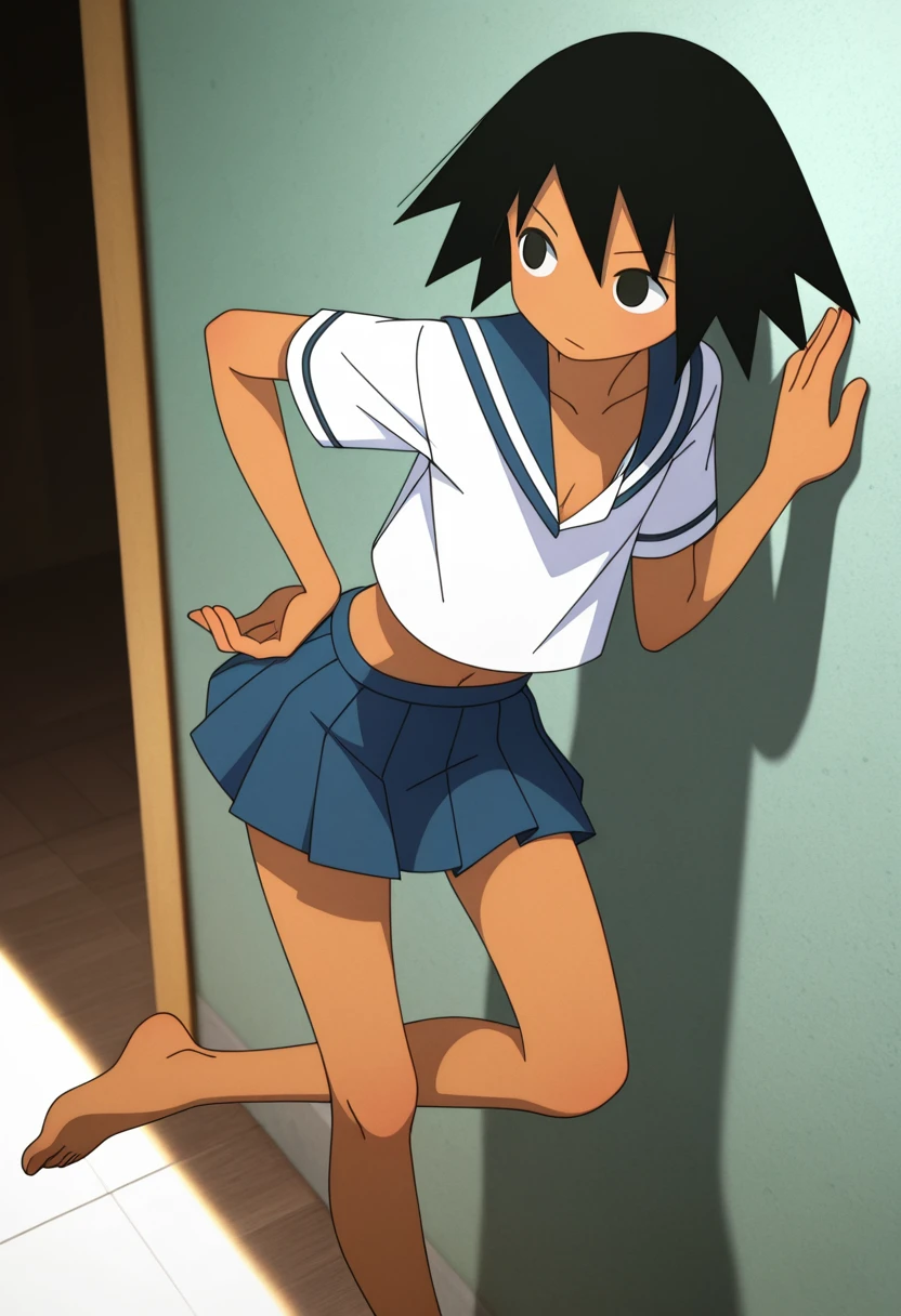 - mariaww, dark-skinned female, petite, black eyes, black hair, short hair, flat chest,