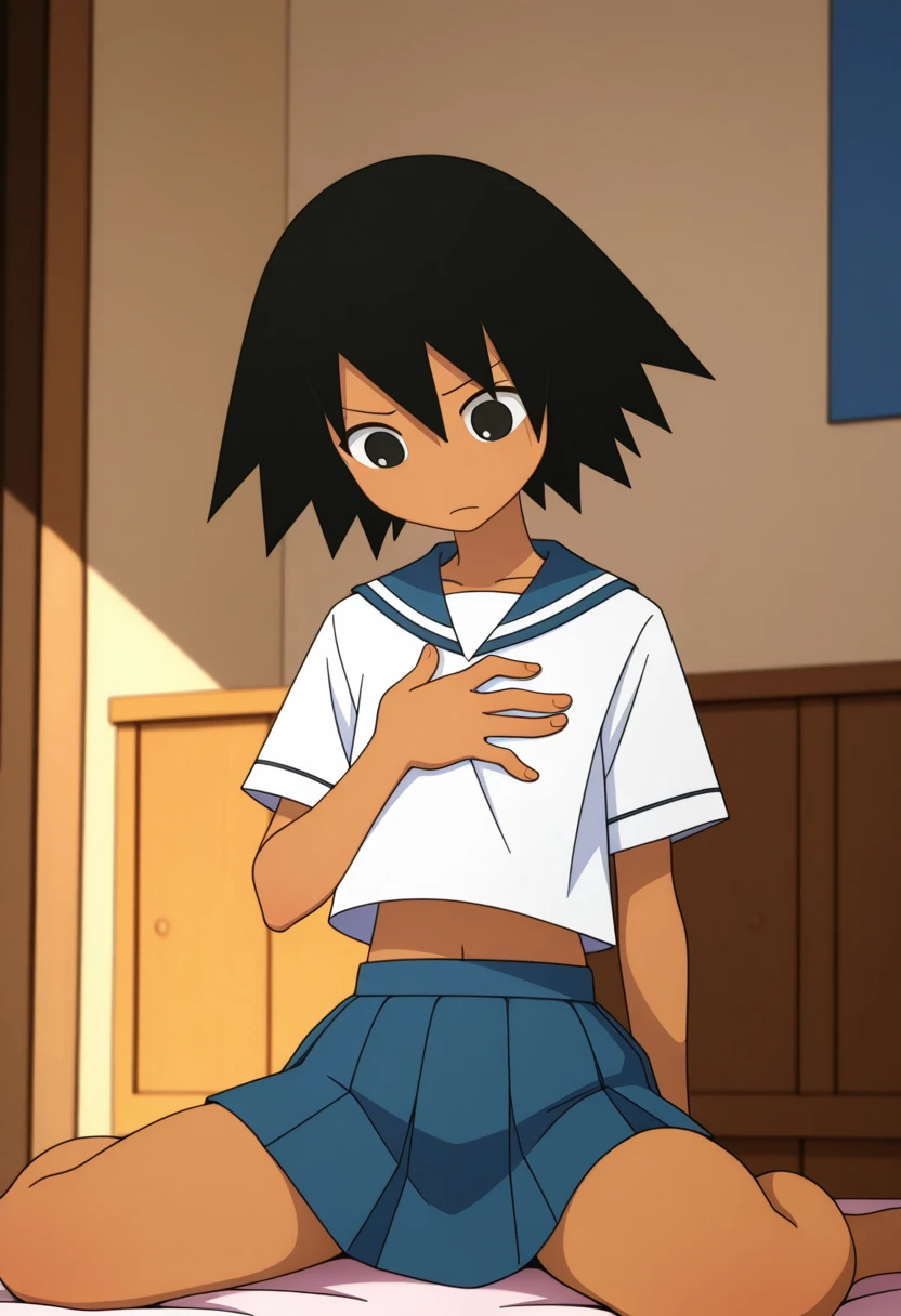 mariaww, dark-skinned female, petite, black eyes, black hair, short hair, flat chest,