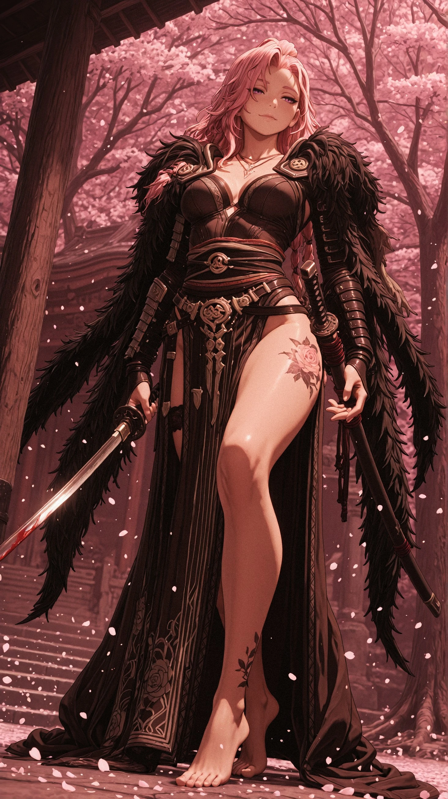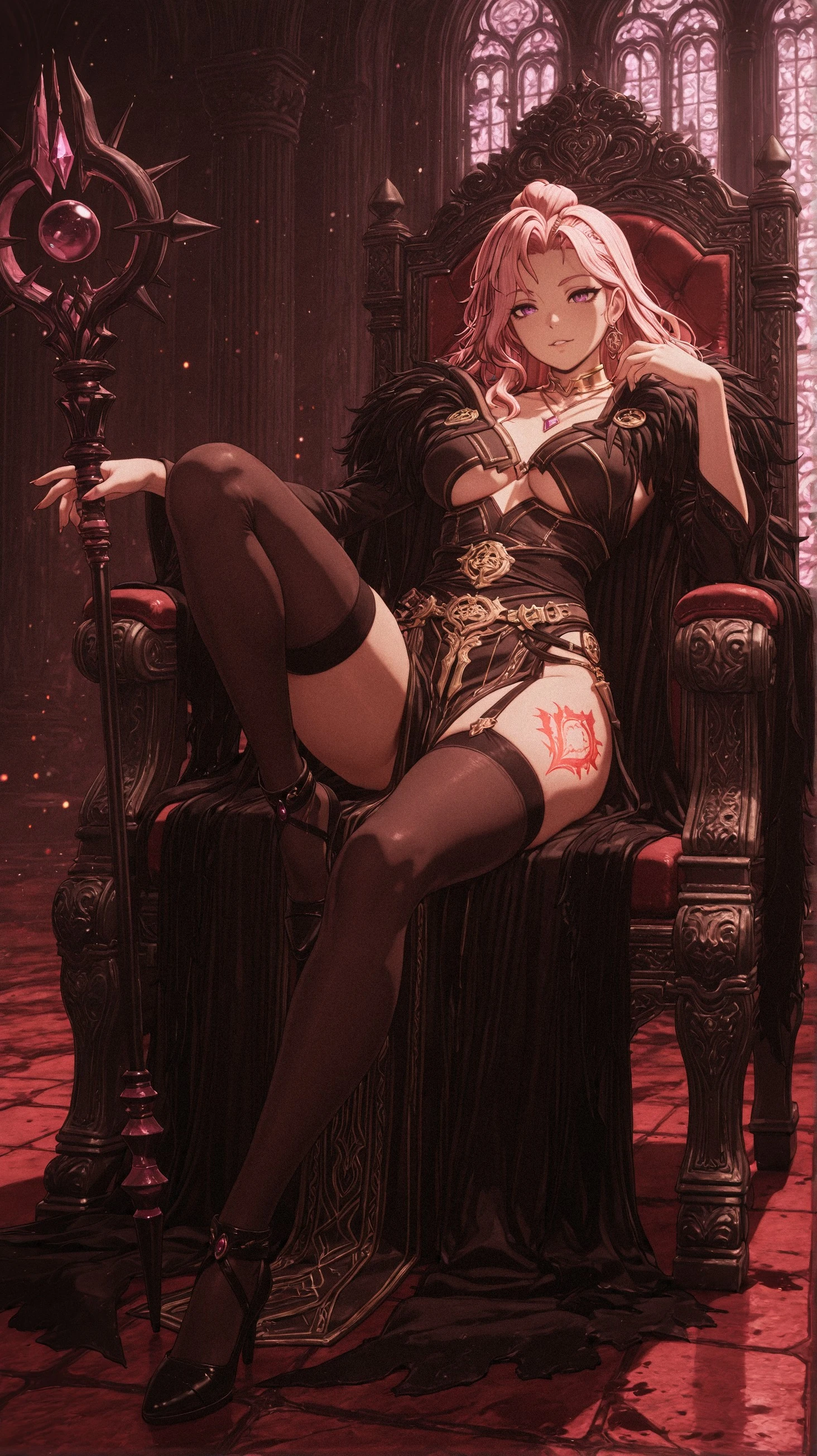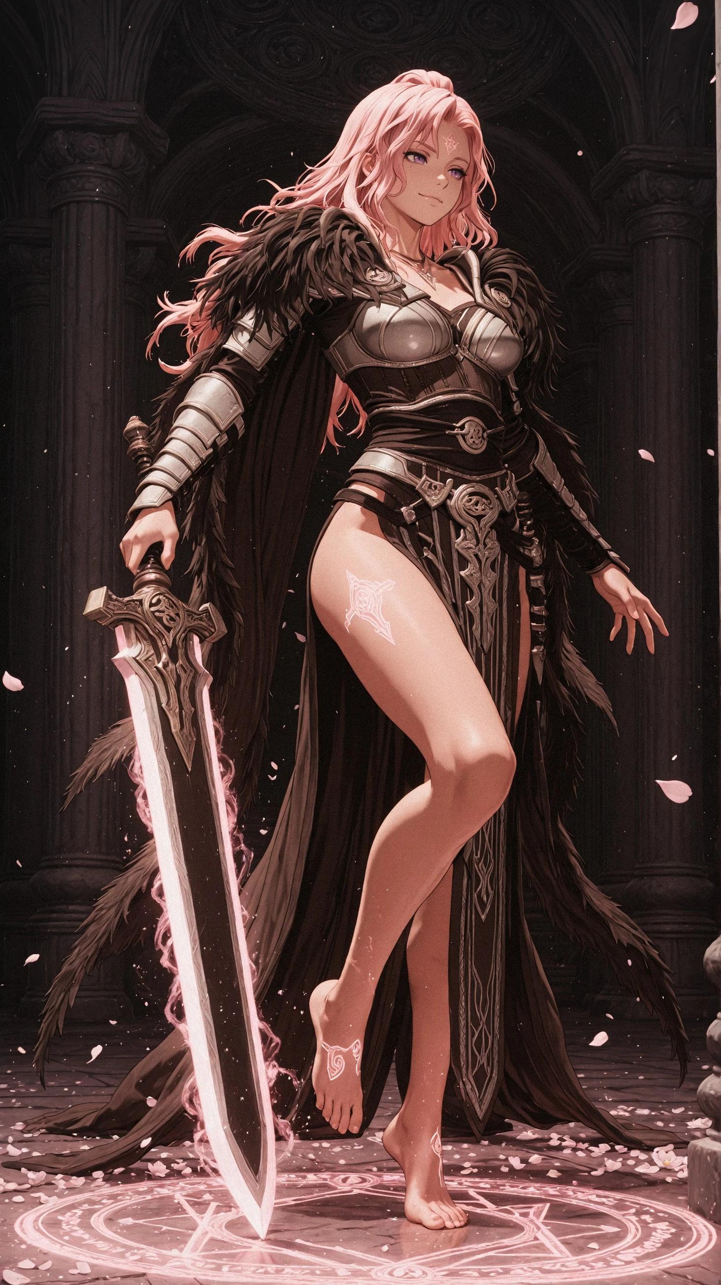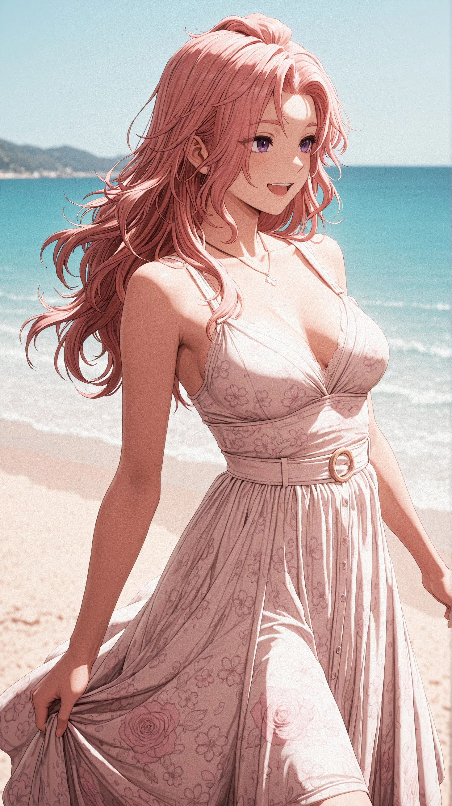 e1amein, long hair, medium breasts, purple eyes, pink hair, necklace,