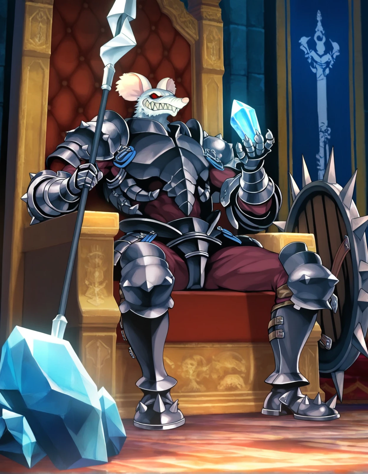 spiked armor, magenta leotard, armored boots, gauntletsWeapon: