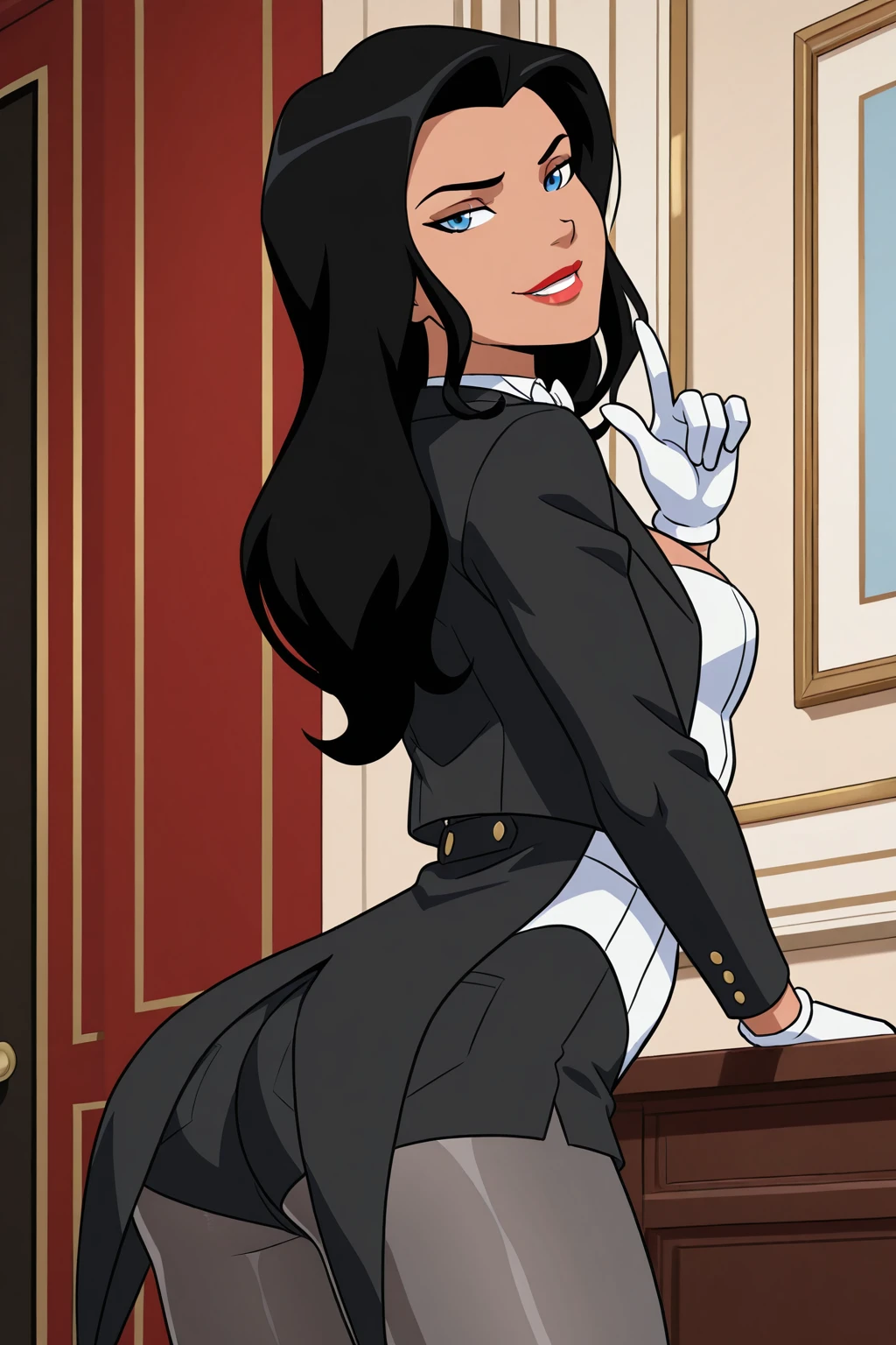 Base Prompt: zatanna zatara, long hair, black hair, blue eyes, makeup, lipstick