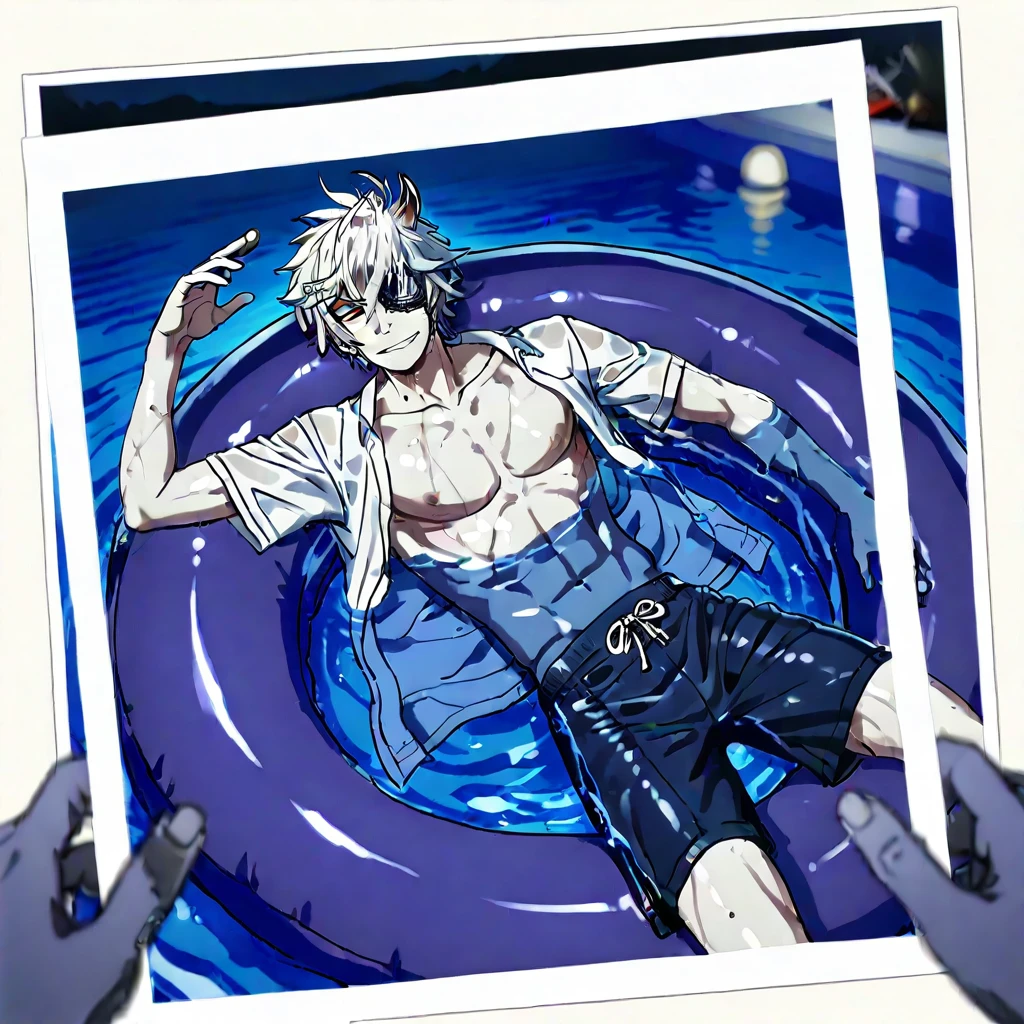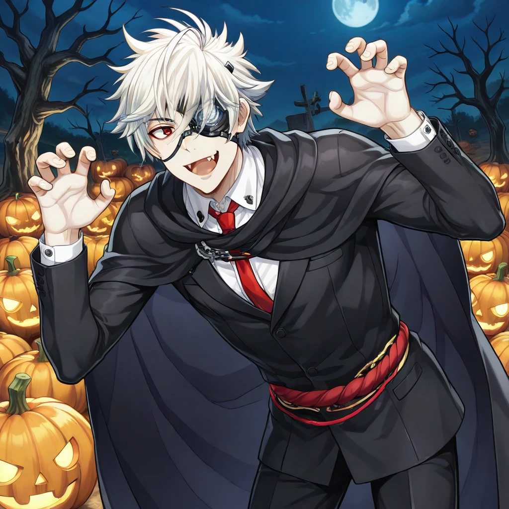 Onimaru_kunitsuna, white hair, 1horn, red eyes, eyepatch,
