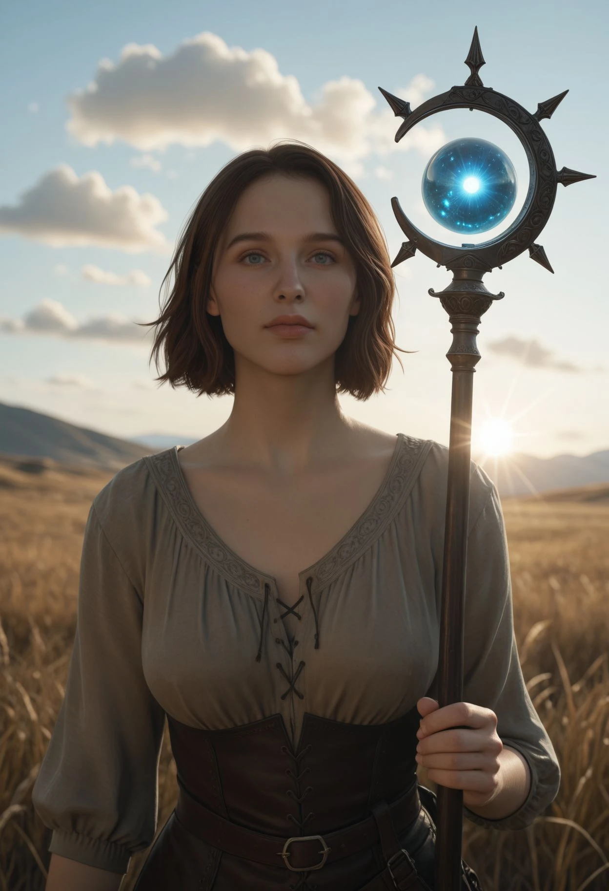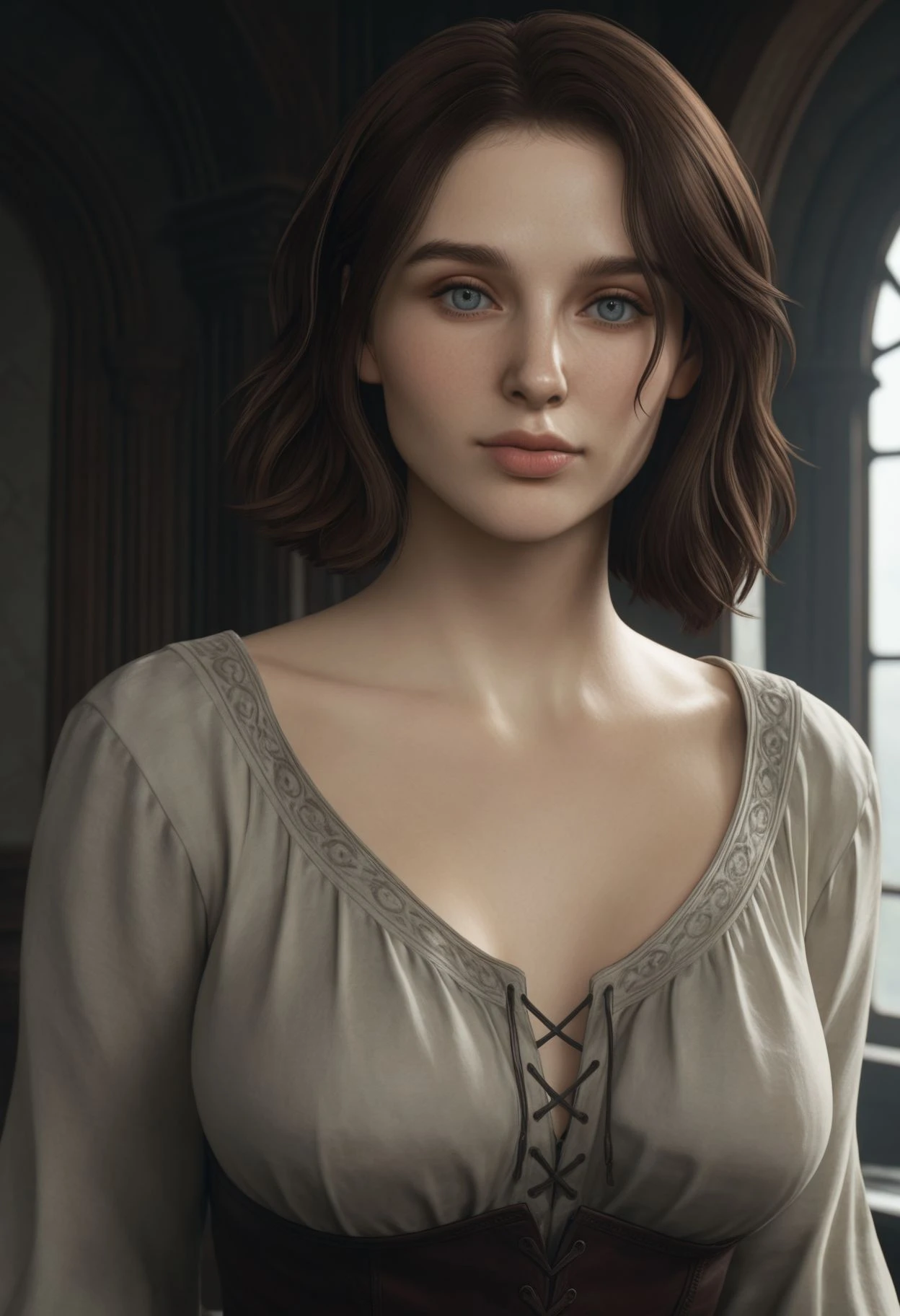 DD2Ulrika, 1girl, brown hair, short hair, blue eyes