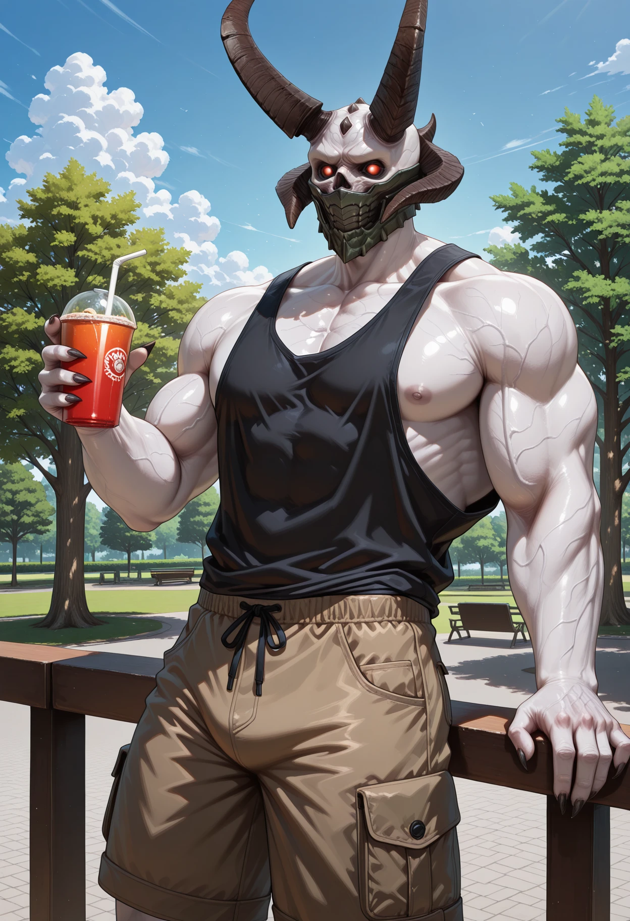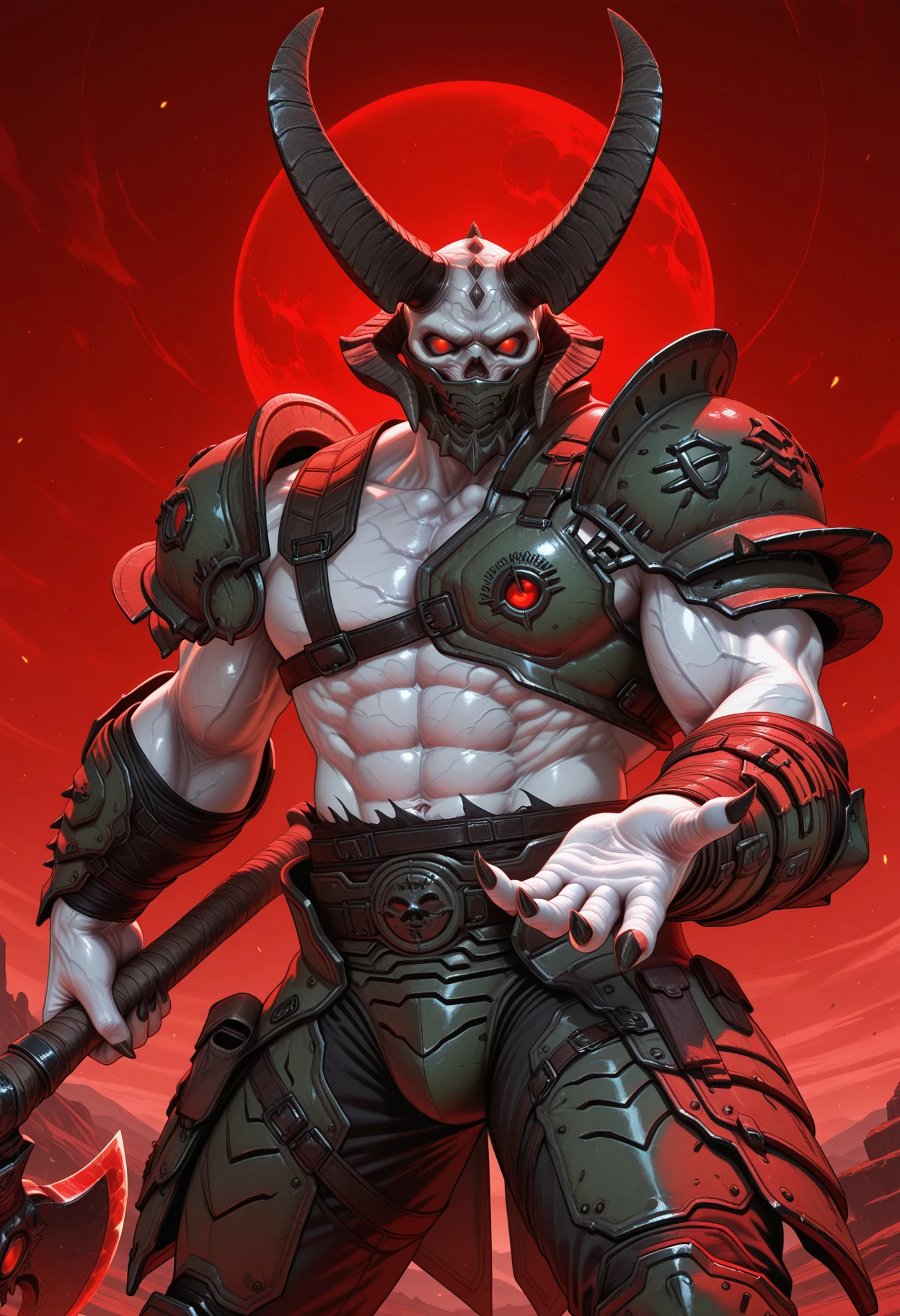 Trigger words (PDXL) : marauder_doom, demon, mask, red eyes, glowing eyes, horns