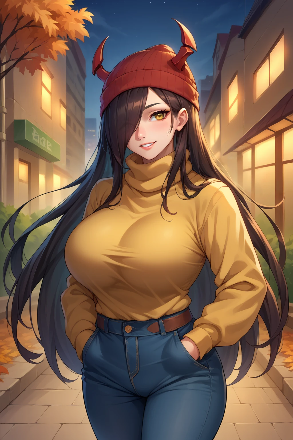 Character trigger : azlnfrdrchdg, large breasts, very long hair, hair over one eye, yellow eyes