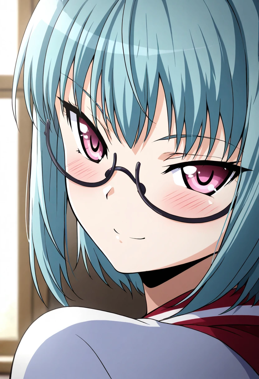 zzSuzu, pink eyes, aqua hair, short hair, half updo, semi-rimless eyewear,