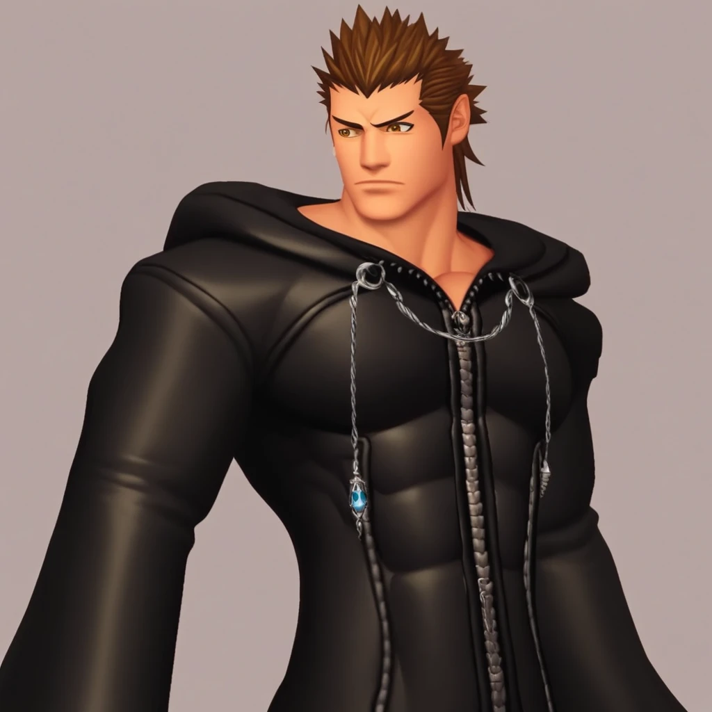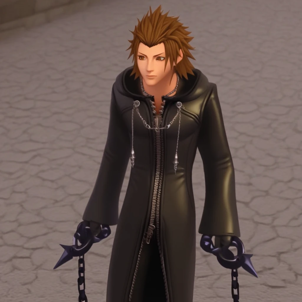 Organization 13 Cloak, Gloves, Hood, Black Leather Pants, Long Sleeves, Zipper, Jewelry, Chain, Necklace