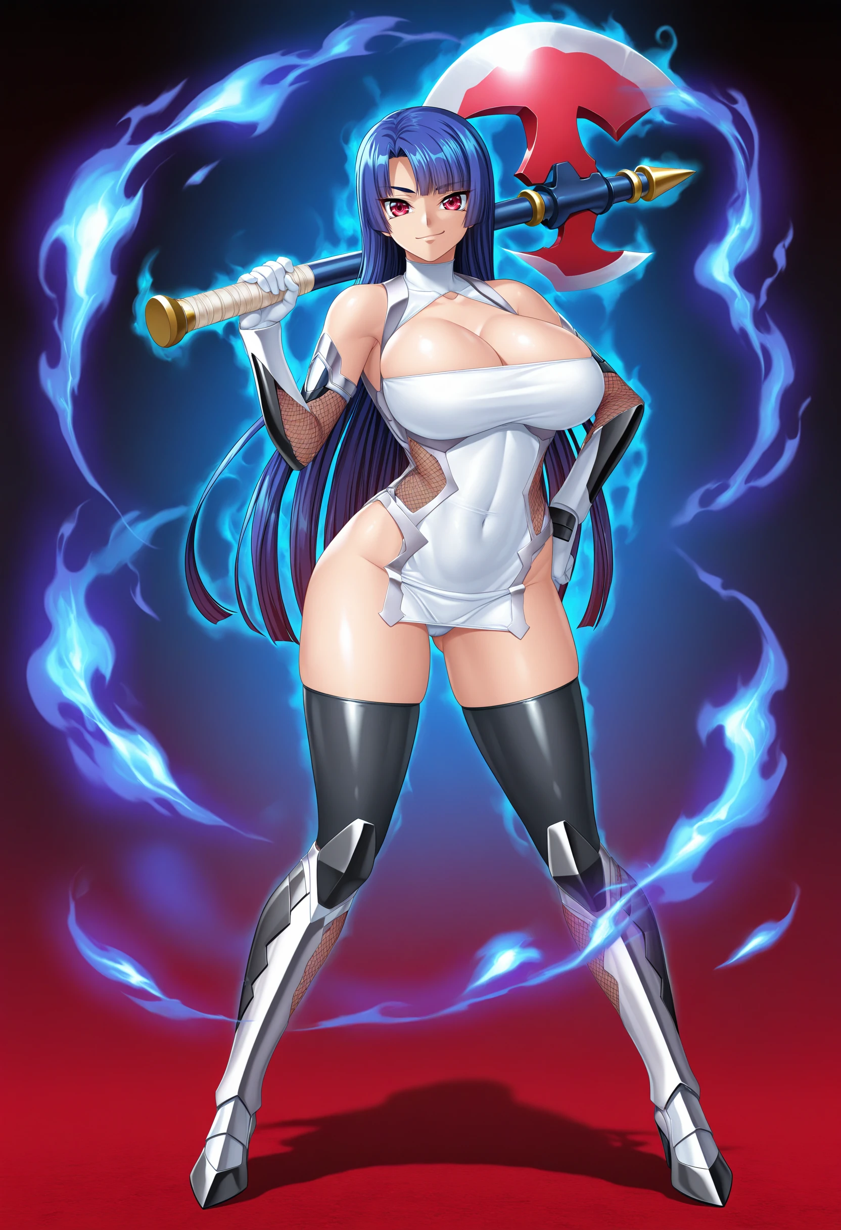 bare shoulders, bare hips, elbow gloves, fishnets, taimanin suit, thigh boots, cleavage,