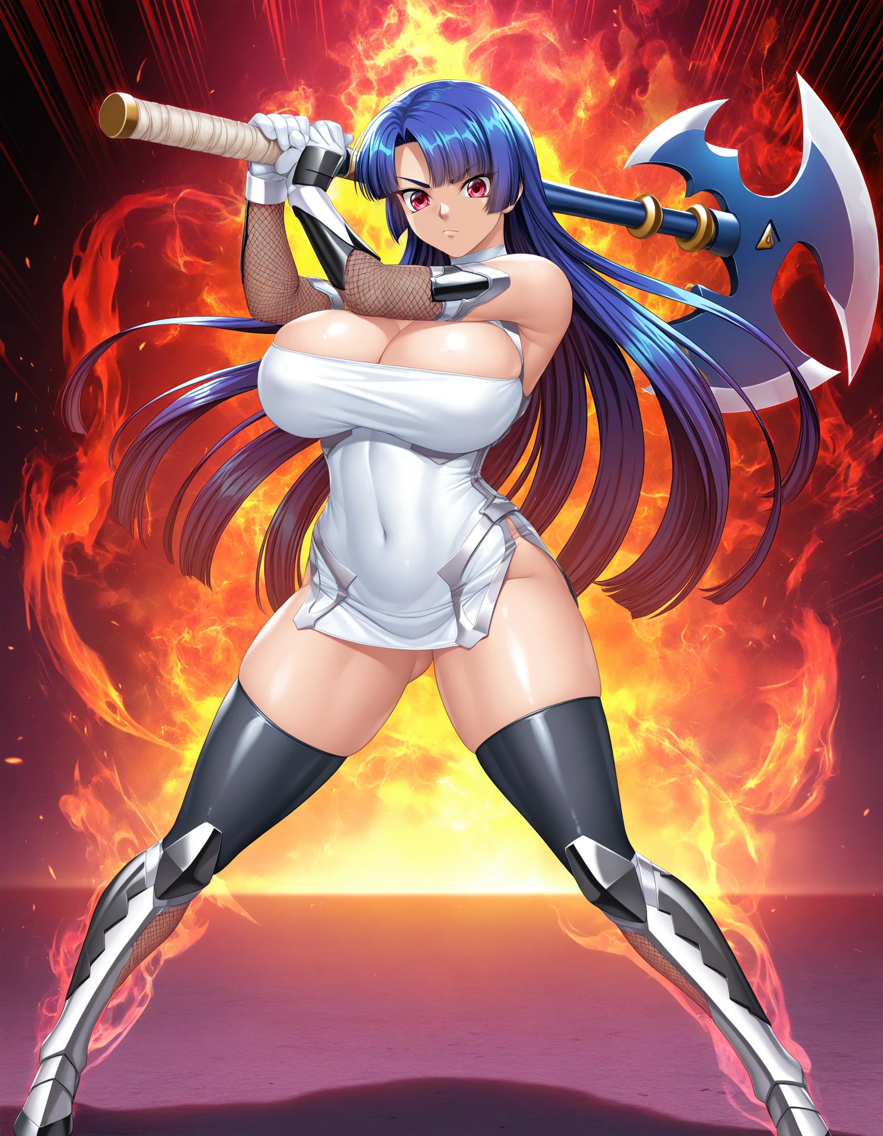 For 1.5 animefull: write "white taimanin suit" and put "leotard" in negative if you have issues with her white ninja dress.