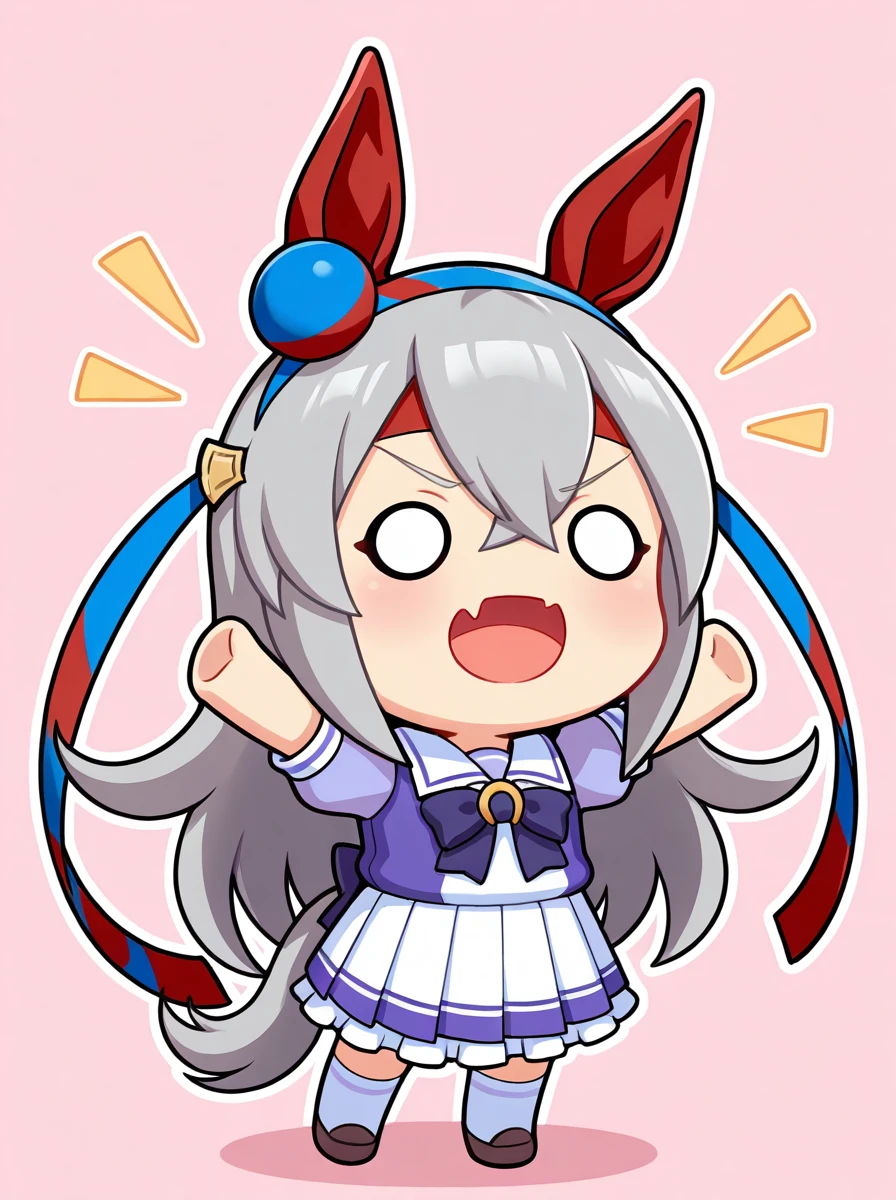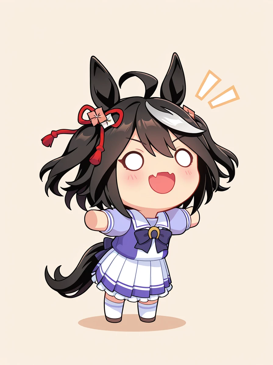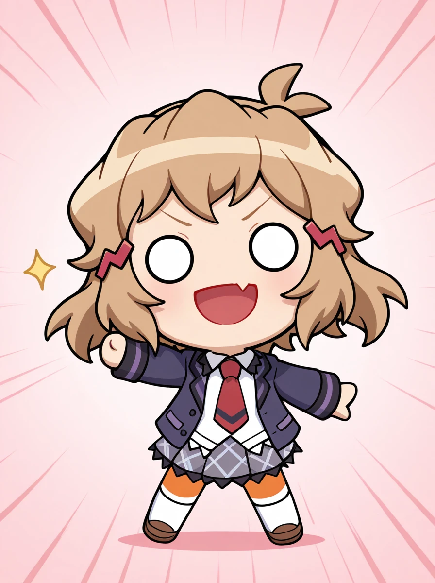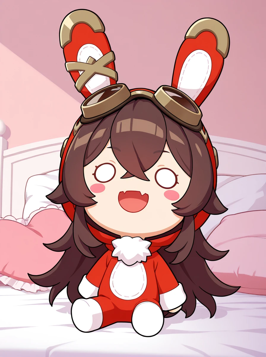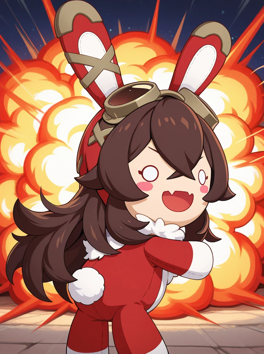 Prompts:chibi brown hair, long hair, hair between eyes. brown hair , o o, smile, skin fang, :d, rabbit ears, blush stickers