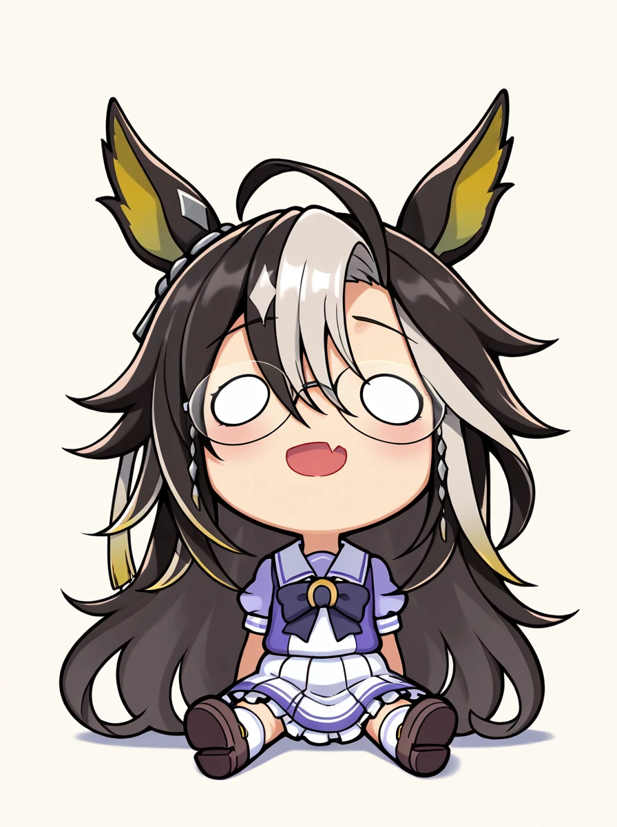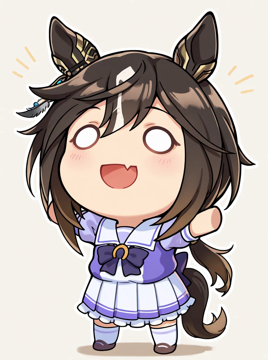 chibi brown hair, long hair, hair between eyes. brown hair , o o, smile, skin fang, :d, rabbit ears, blush stickers