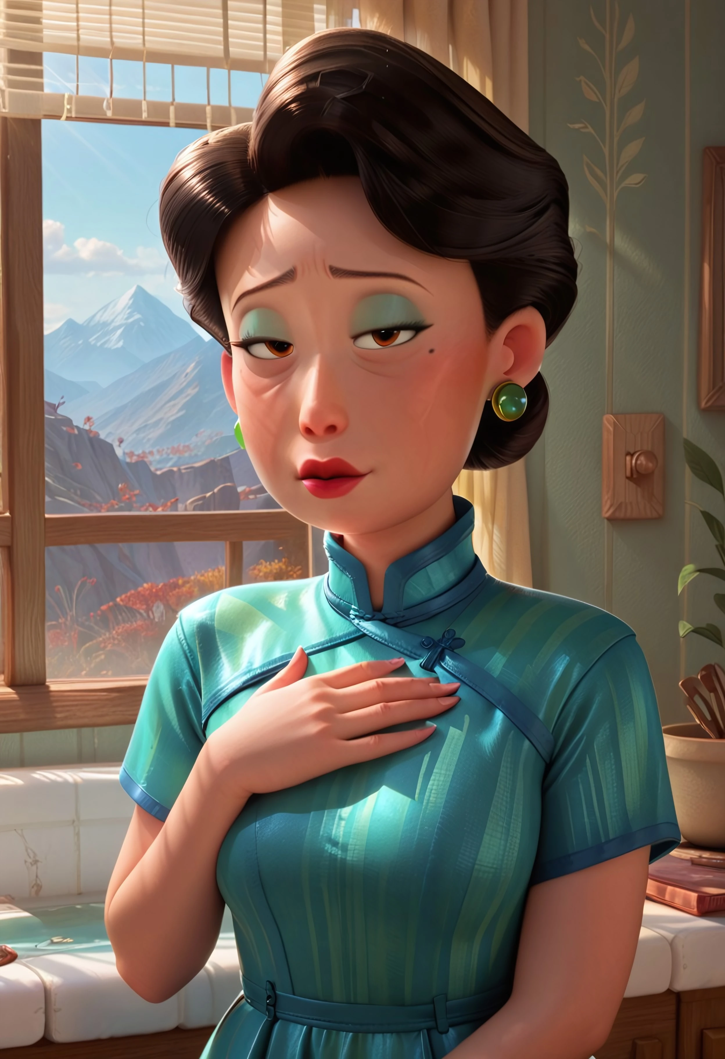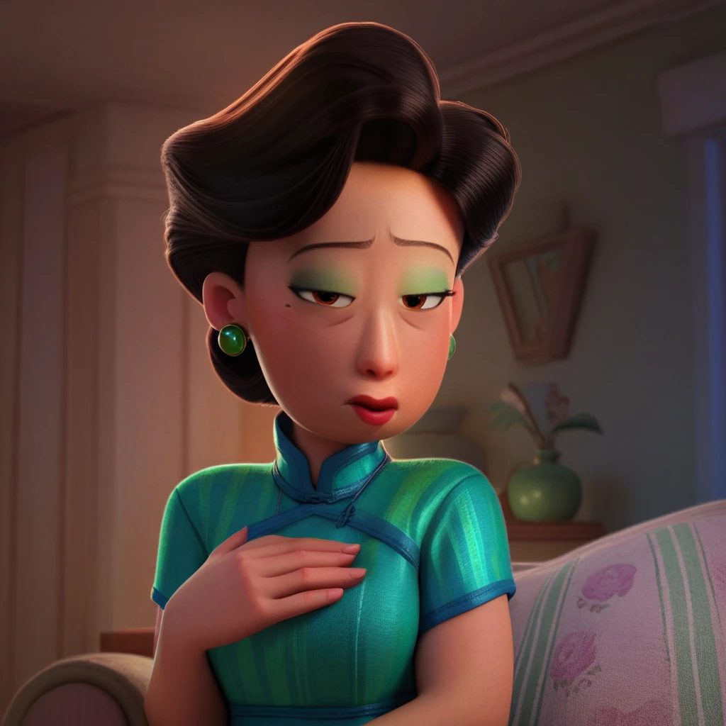 MingMilf, black hair, short hair, brown eyes, mole under the eye, jewelry