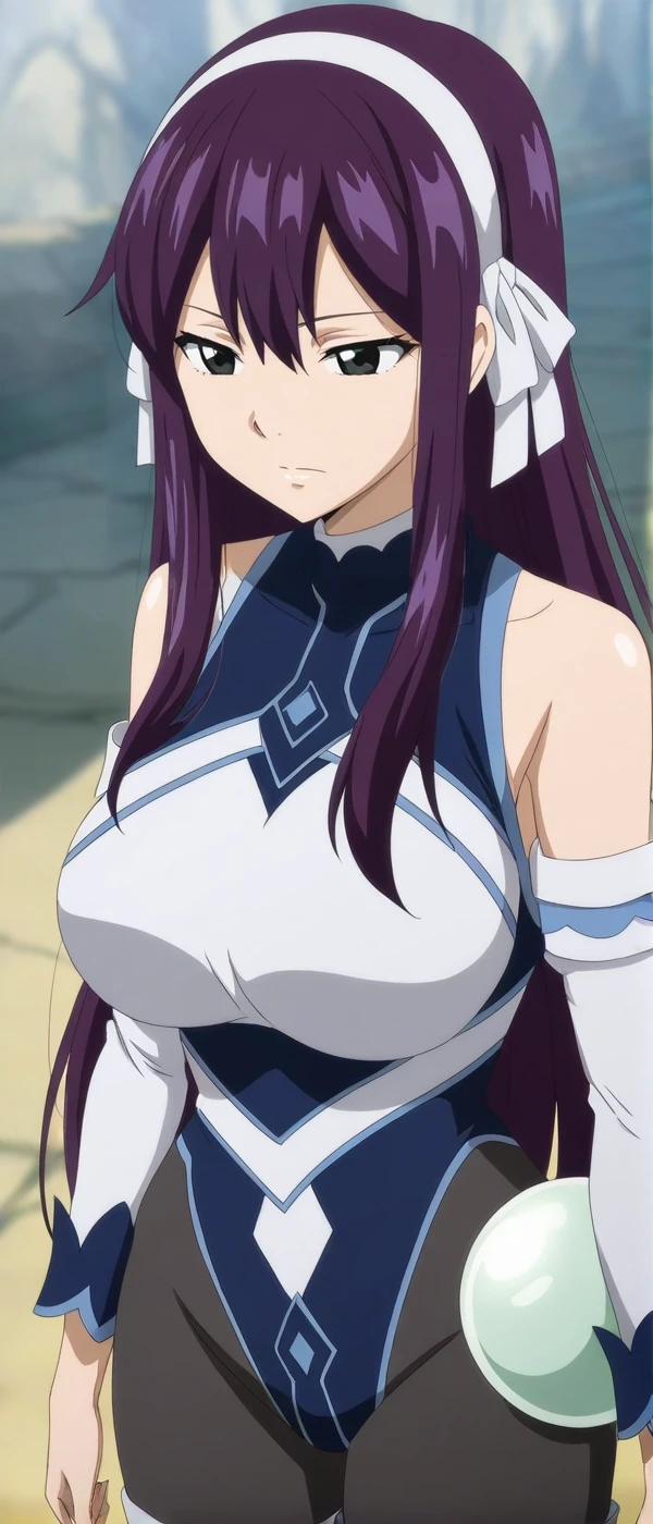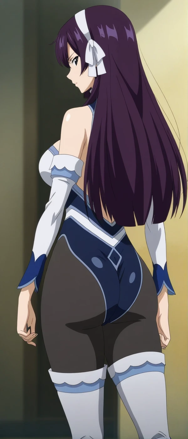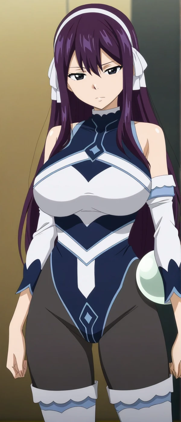 anime coloring, black , detached sleeves, elbow gloves, pantyhose, thigh boots, hair ribbon, white ribbon, hairband