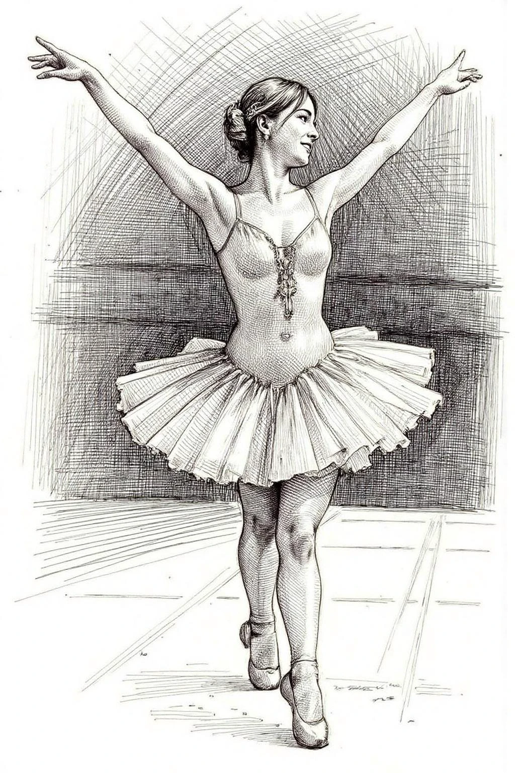 Prompt: crosshatch black and white drawing of a woman swimming underwater. The woman is wearing a one piece swimsuit, and she is wearing goggles on her eyes. Her arms are outstretched. To the right of the woman, a sea turtle is swimming in the water.