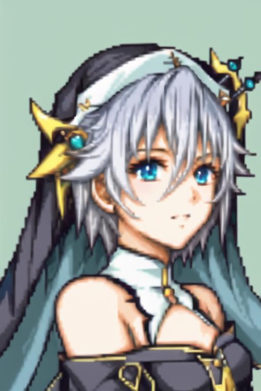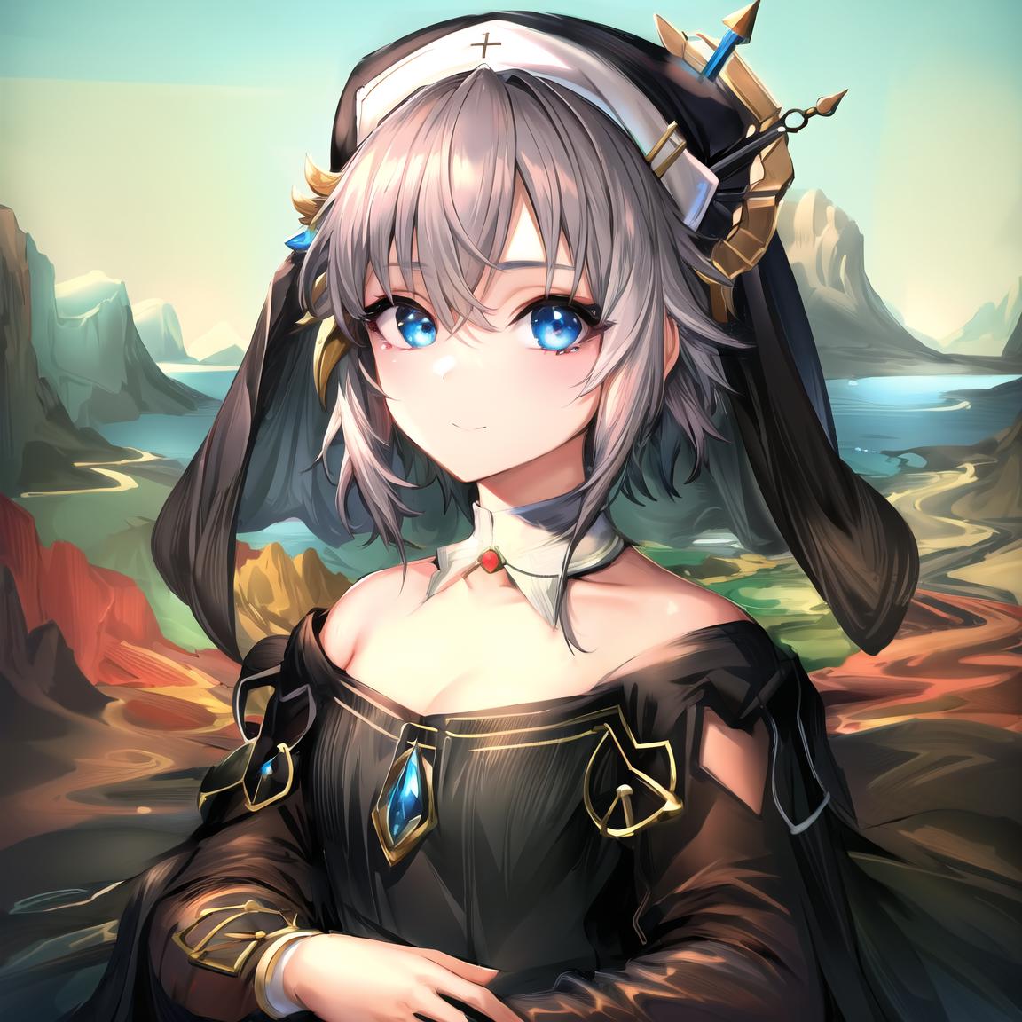 hn1, small breasts, nun, black dress, bare shoulders, long sleeves, jewelry, black thighhighs, see-through, side slit