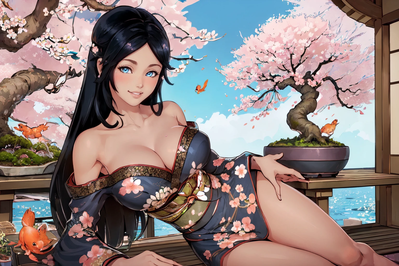 Trigger Kimono : 1girl, long hair, kimono, off shoulder, obi,
