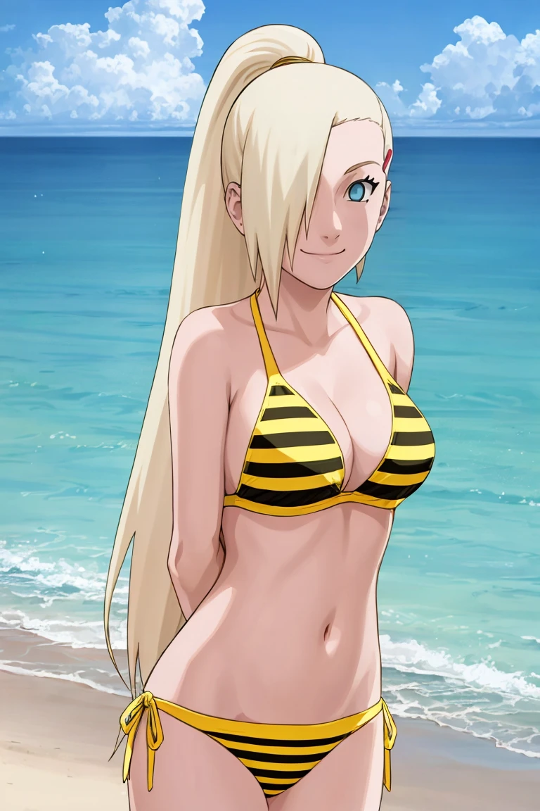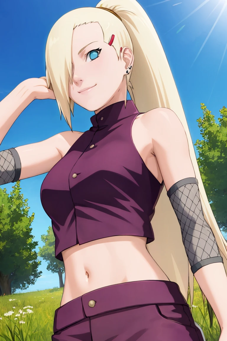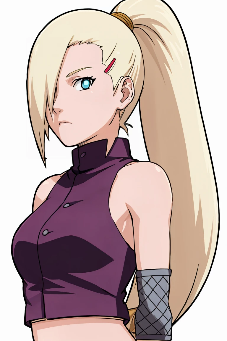 Basic prompts : 1girl, yamanaka ino, blonde hair, hair over one eye, long hair, ponytail, blue eyes, hairclip