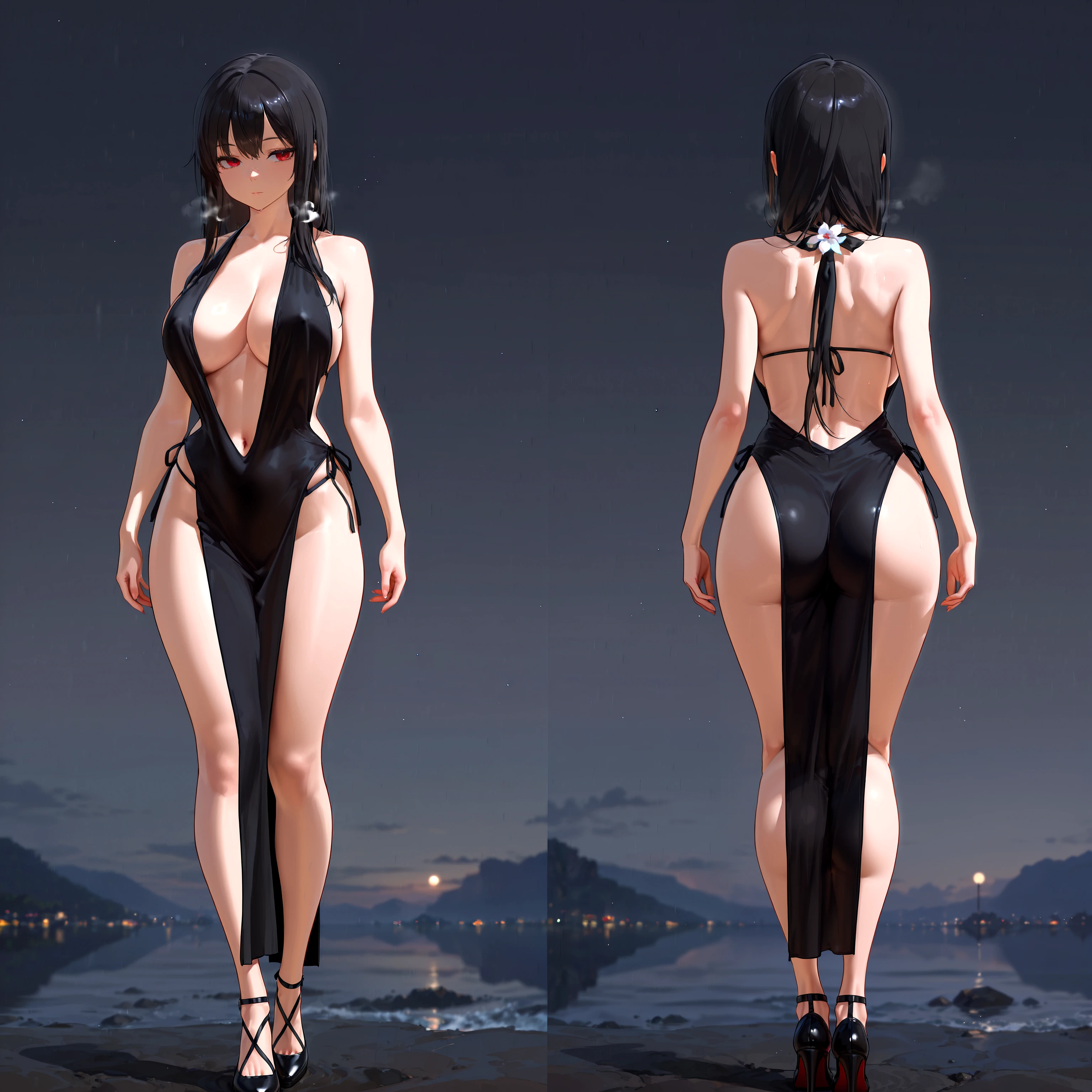 Worked this LoRA to be a little more stable. Not as many helper tags are needed now, but may be needed from certain angles. Usually pelvic curtain, navel, and/or backless dress are enough to get the right type of dress every time if you want to keep them in the prompt.