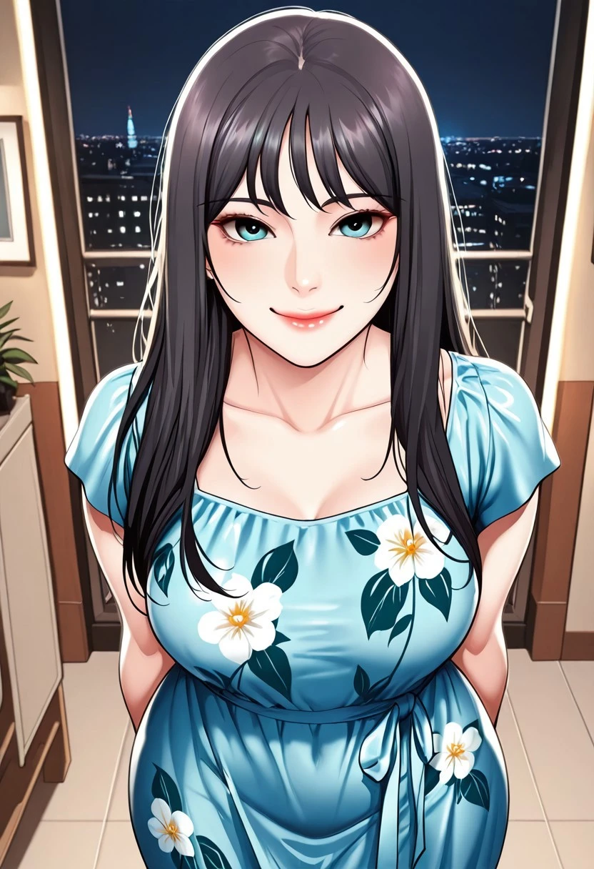 Jang Si-Hyun: jang_si-hyun, beautiful black hair, beautiful long hair, huge and shaggy breasts, piercing blue eyes