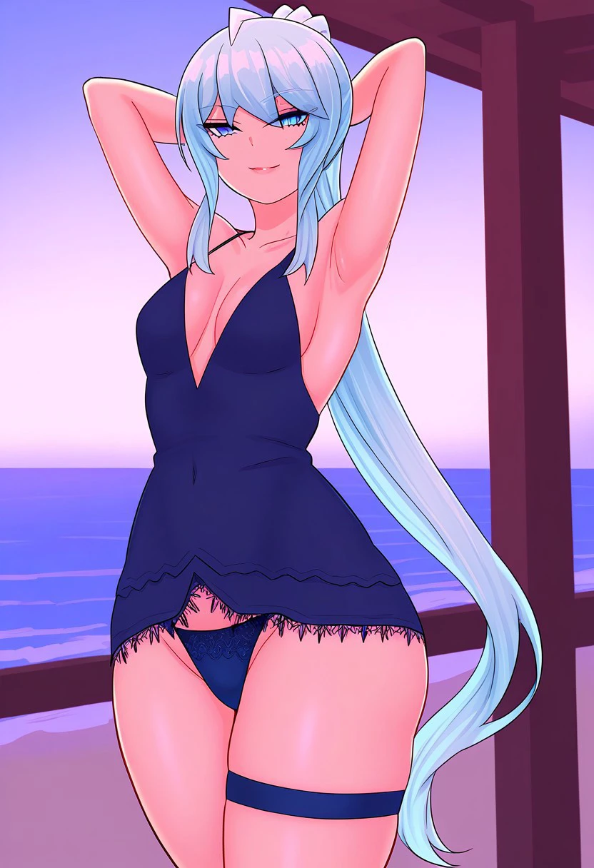 (( <lora:ruina:1> , ruina, thin waist, thin hips, beautiful skin, piercing blue eyes, clear eyes, bright pupils, beautiful eyes, beautiful light blue hair, ponytail, ahoge, bangs, small breasts, natural beauty, extraordinary beautiful woman, attractive woman, super sexy woman, lustful body, sexy woman with seductive obscene body, sensual body, voluptuous body, sexy beauty, no piercings, no piercing, ))