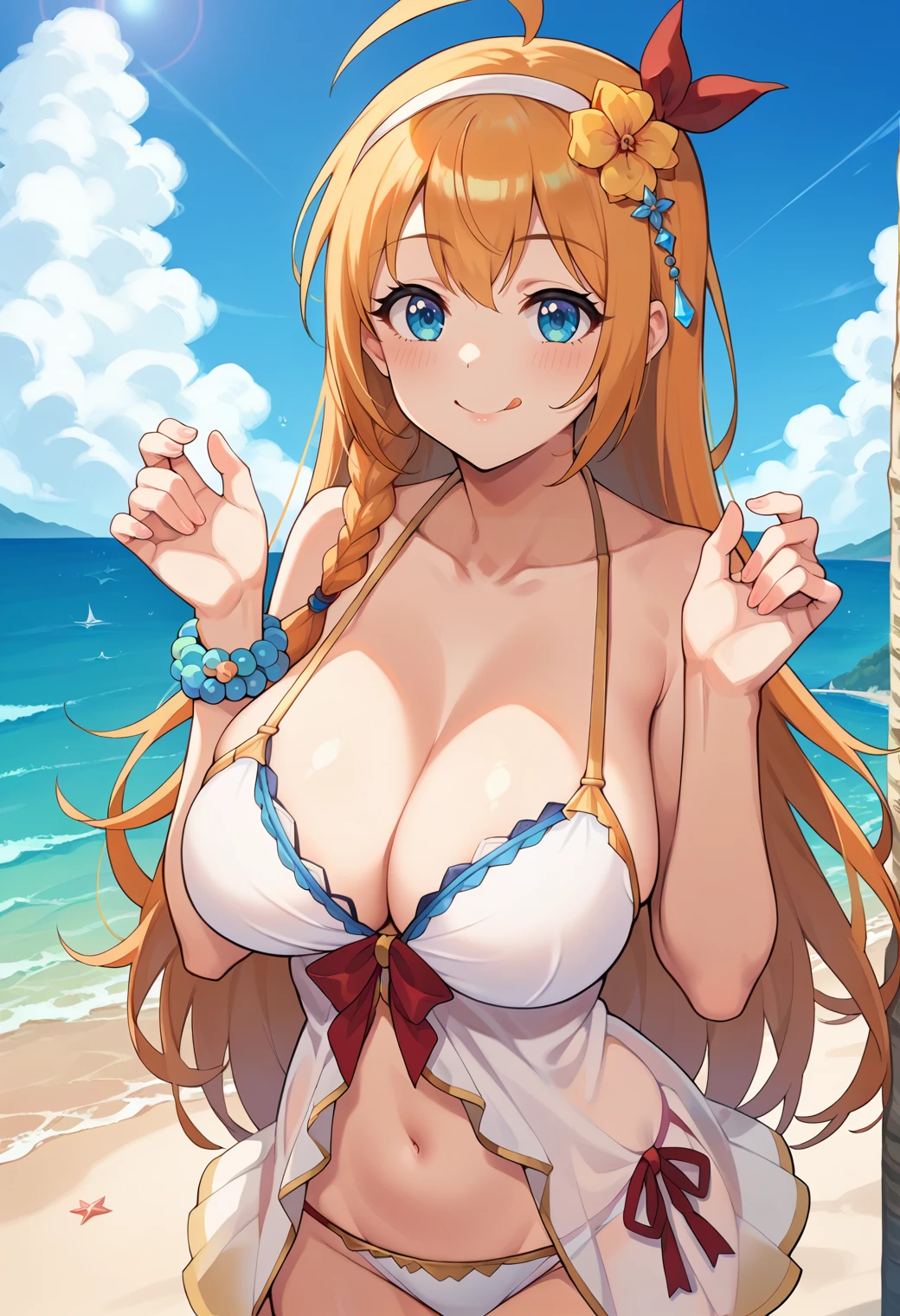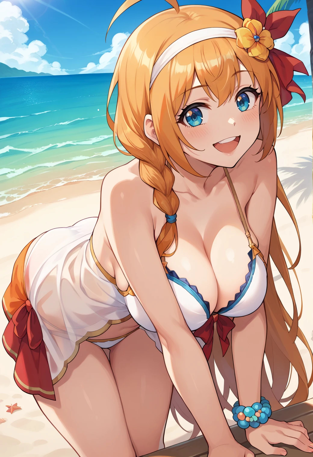 pecosummer, white hairband, hair red ribbon, hair flower, yellow flower, white bikini, babydoll, bead bracelet,Princess Form Clothes: