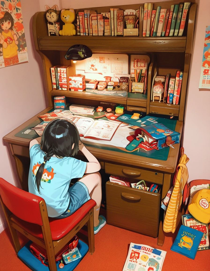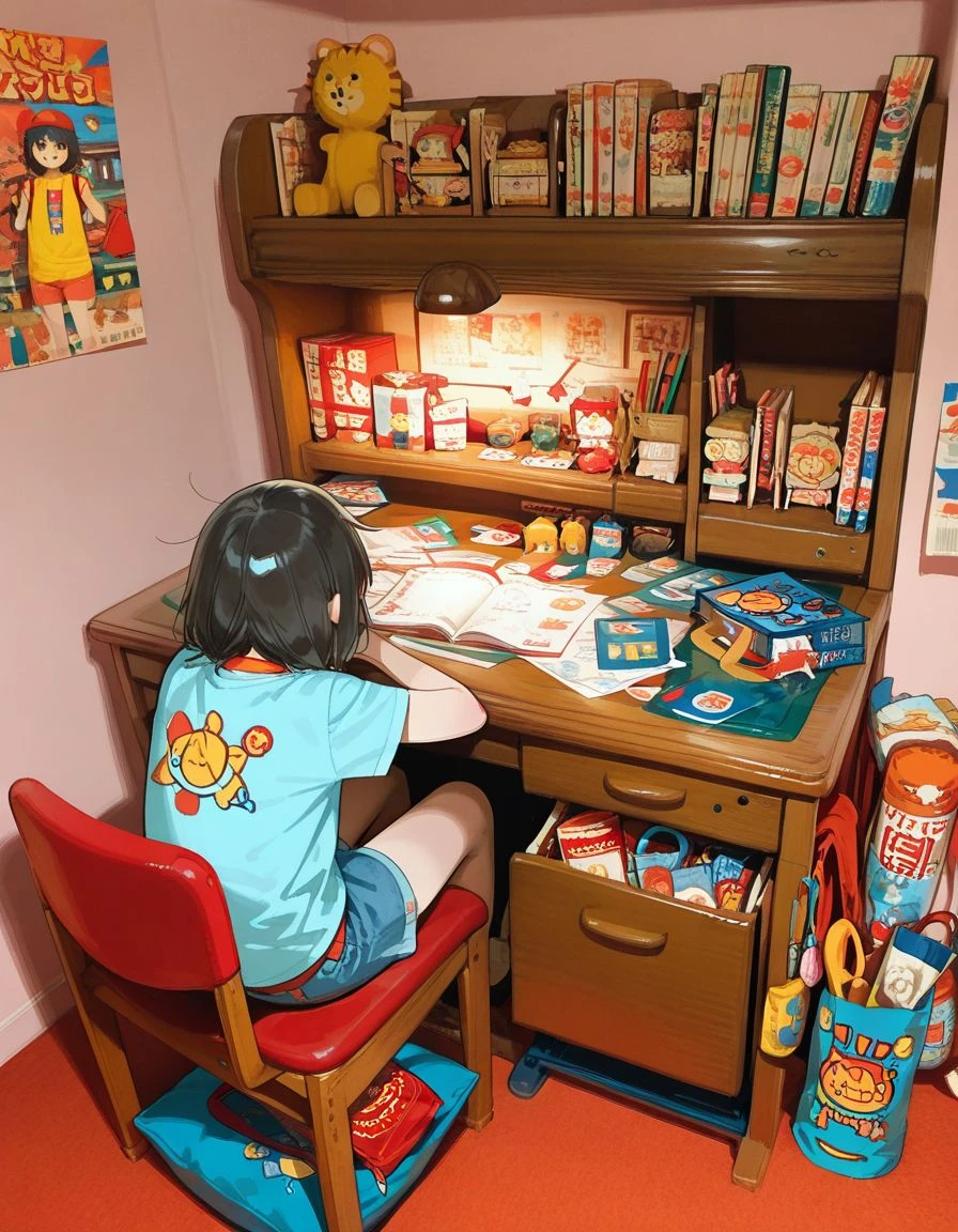 shelf, book, bag, rug, lamp, basket, toy, stuffed toy, sticker,
