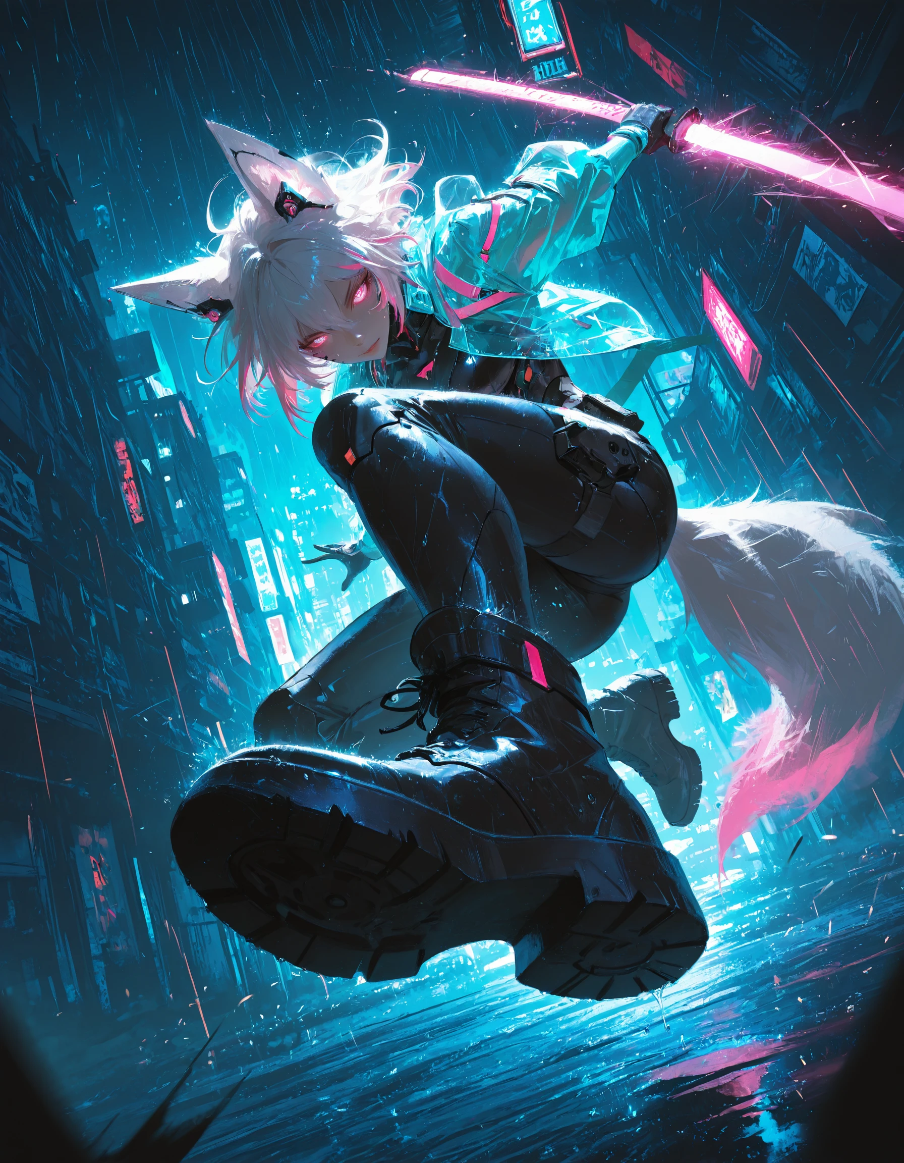 Unlike standard anime models that prefer static, portrait-style posing, ANIMA displays a high bias for Dynamic Composition. It frequently attempts aggressive camera angles (fisheye, low-angle, high-angle) and intense color theory without being prompted to do so.