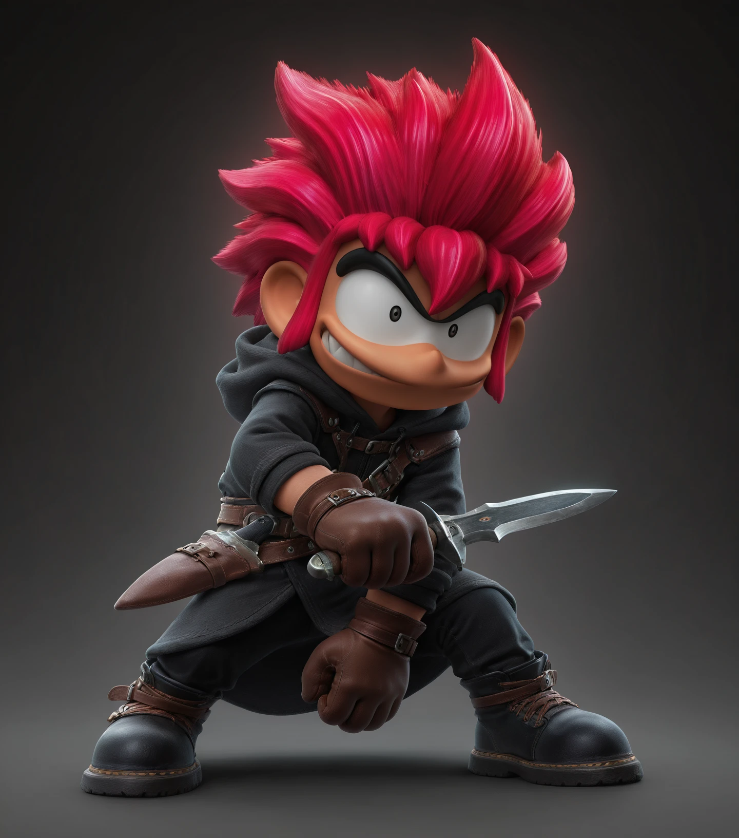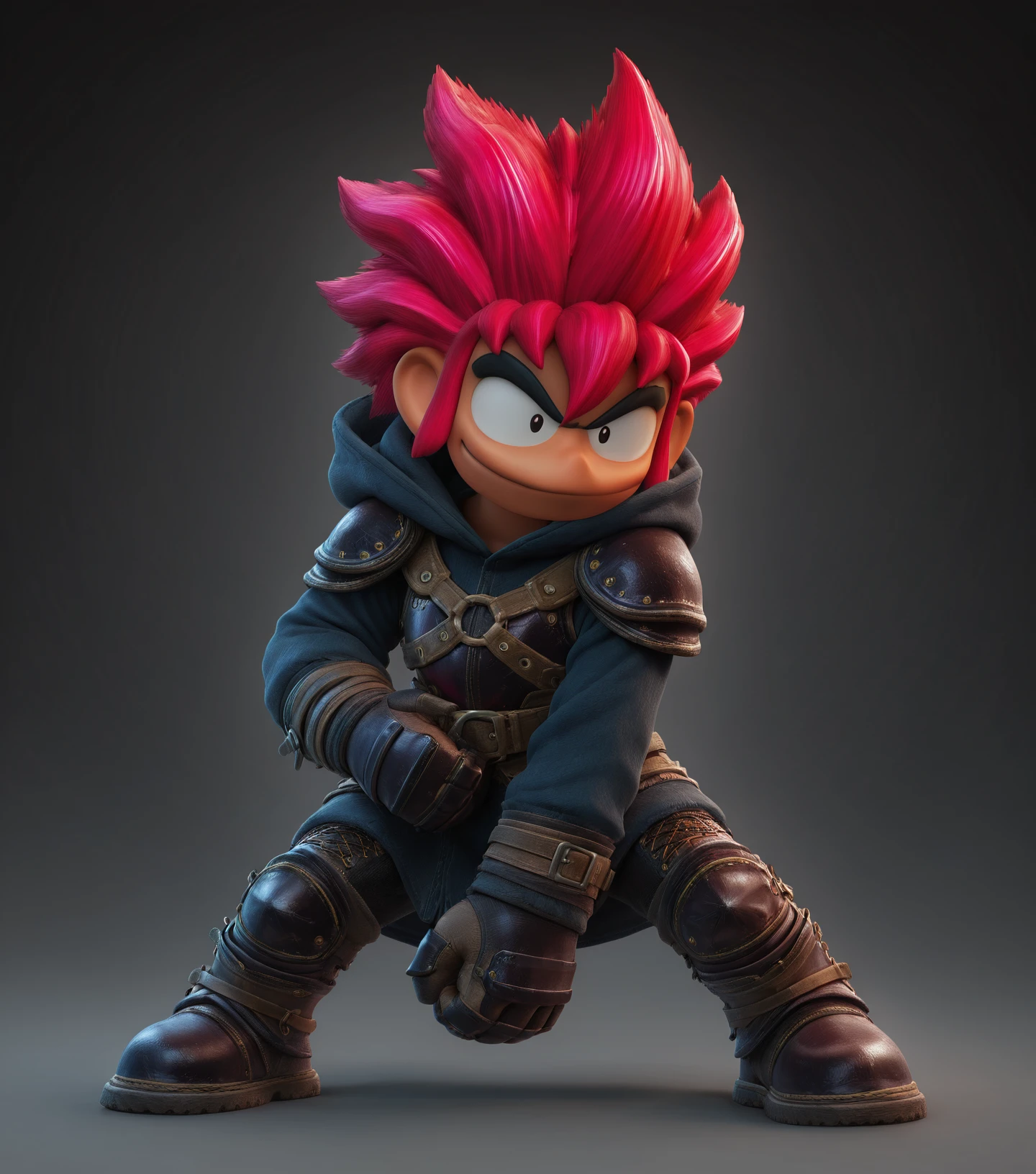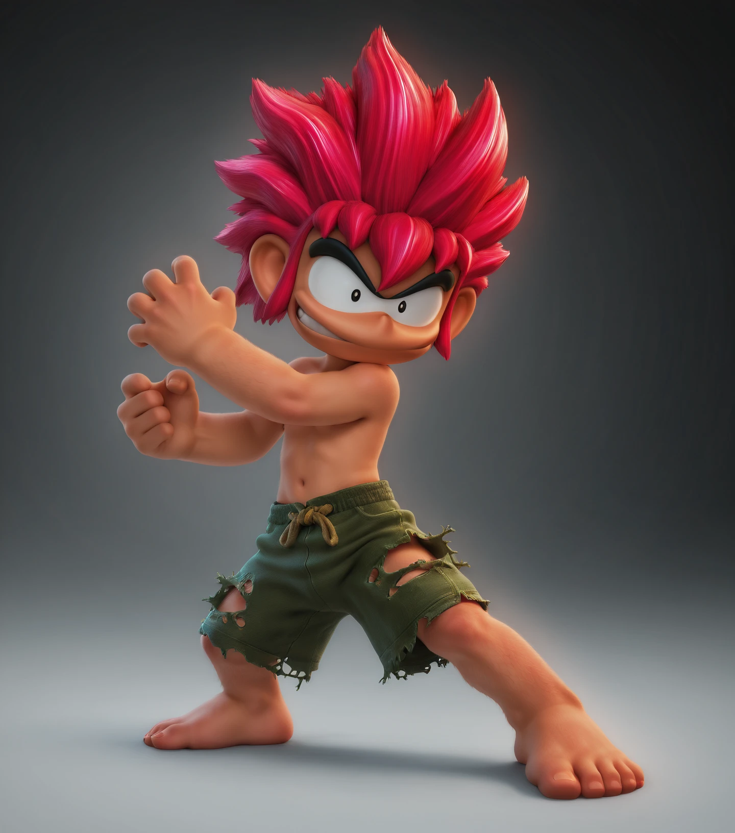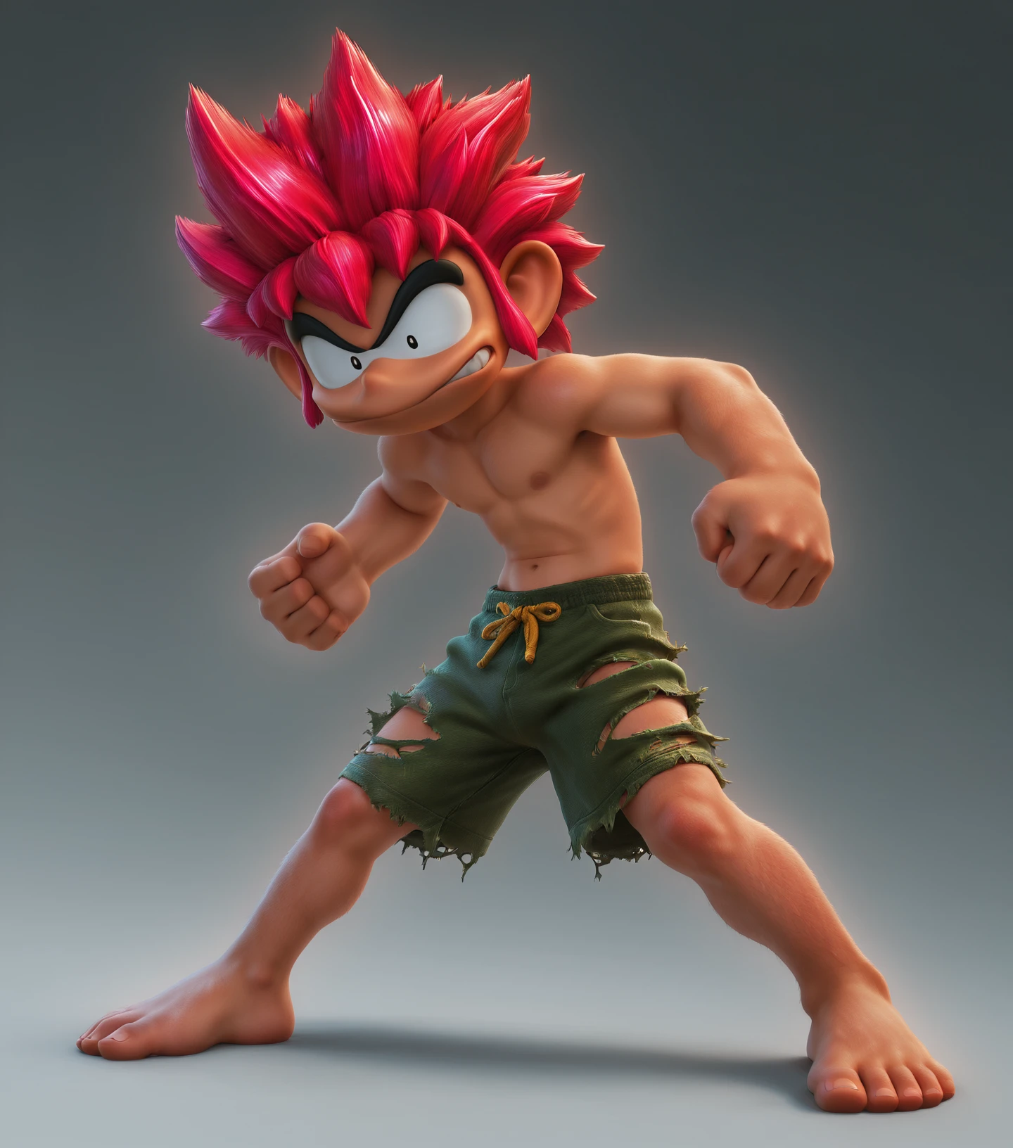 Trigger: t0mb4v41, 1boy, solo, male focus, spiked hair, full body, red hair