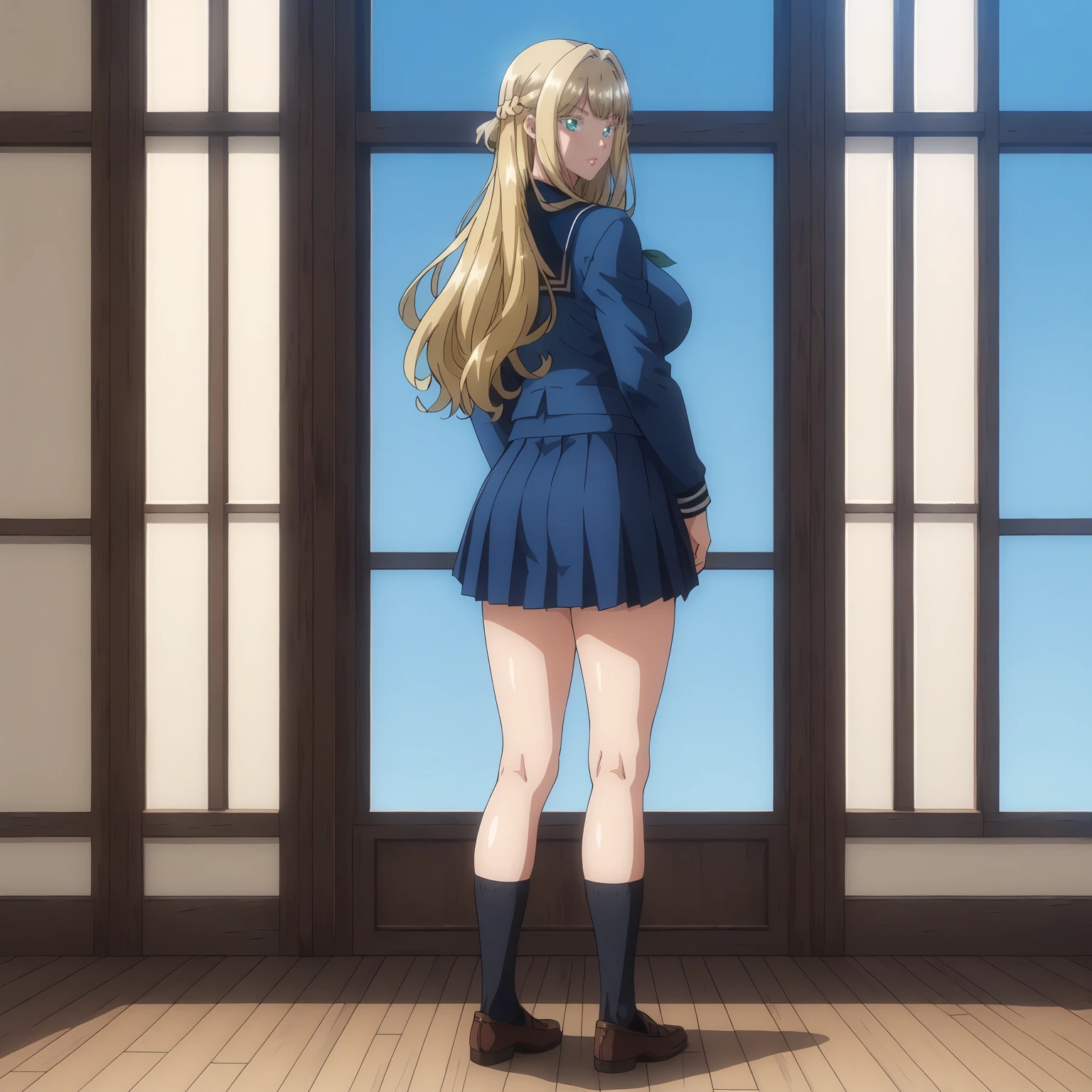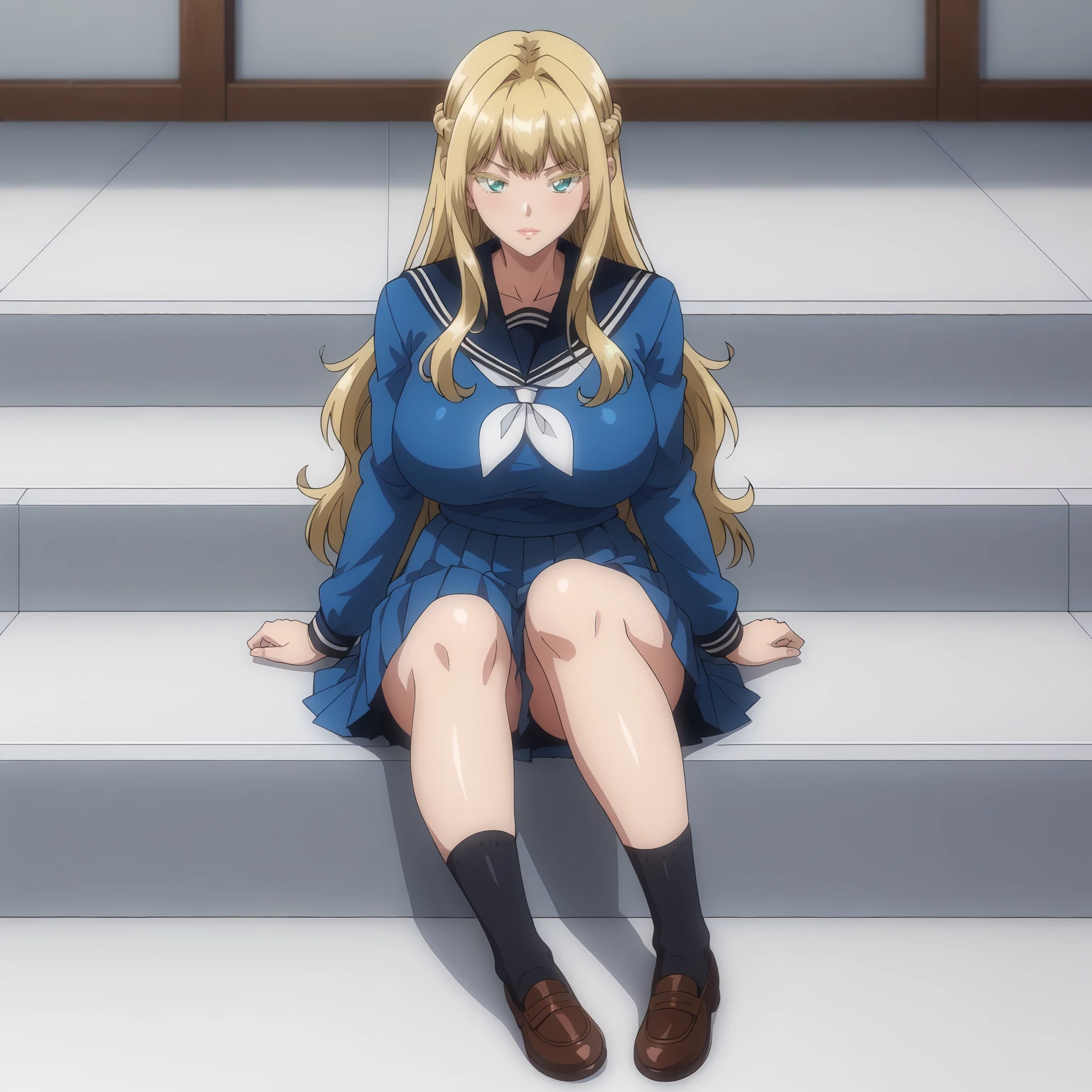 LouisaRichter,1girl,blonde hair,long hair,french braid,colored eyelashes,aqua eyes, large breasts,
