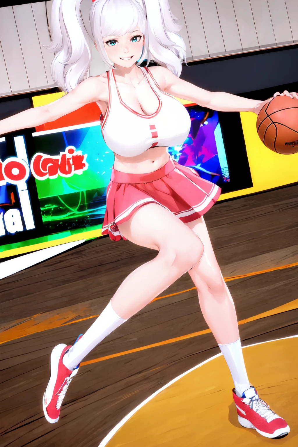 Trigger Sport : 1girl, long hair, cleavage, twintails, top, socks, freckles, petticoat
