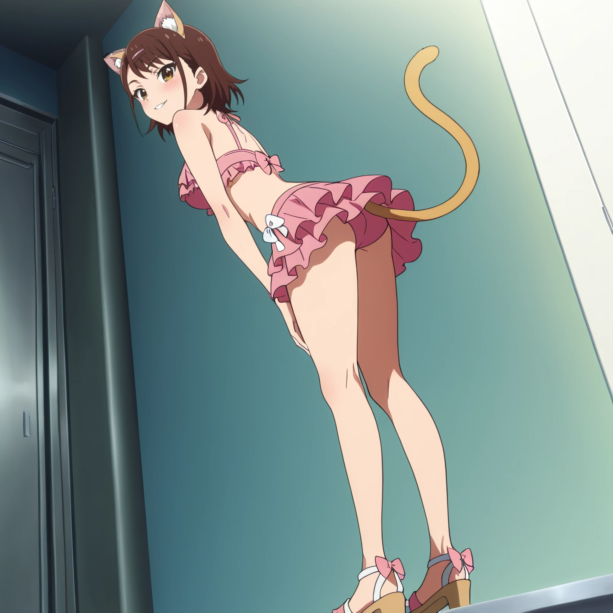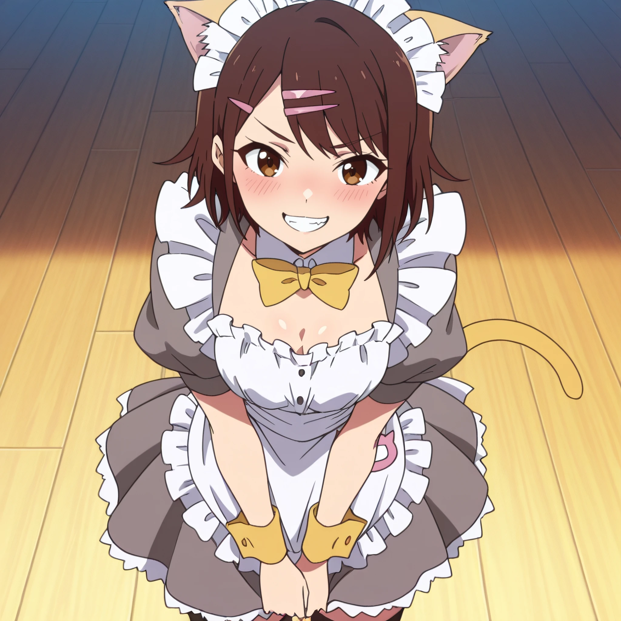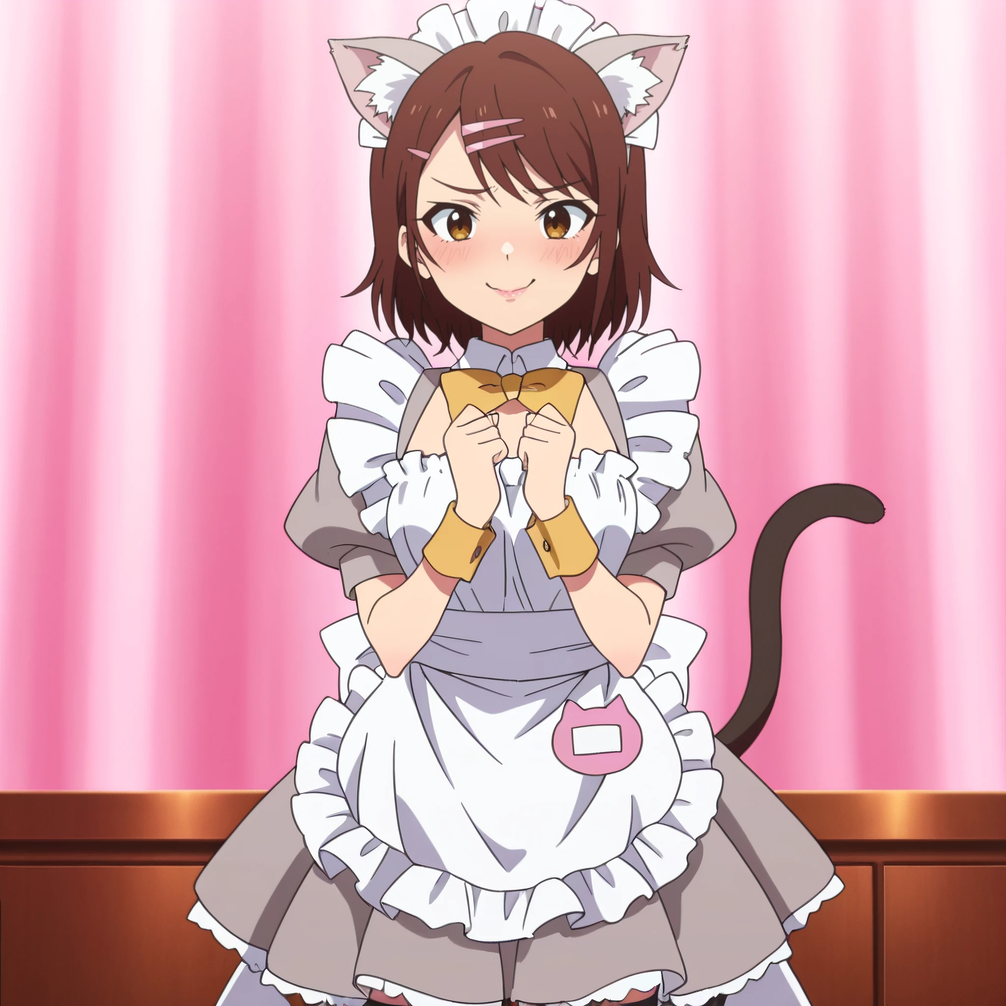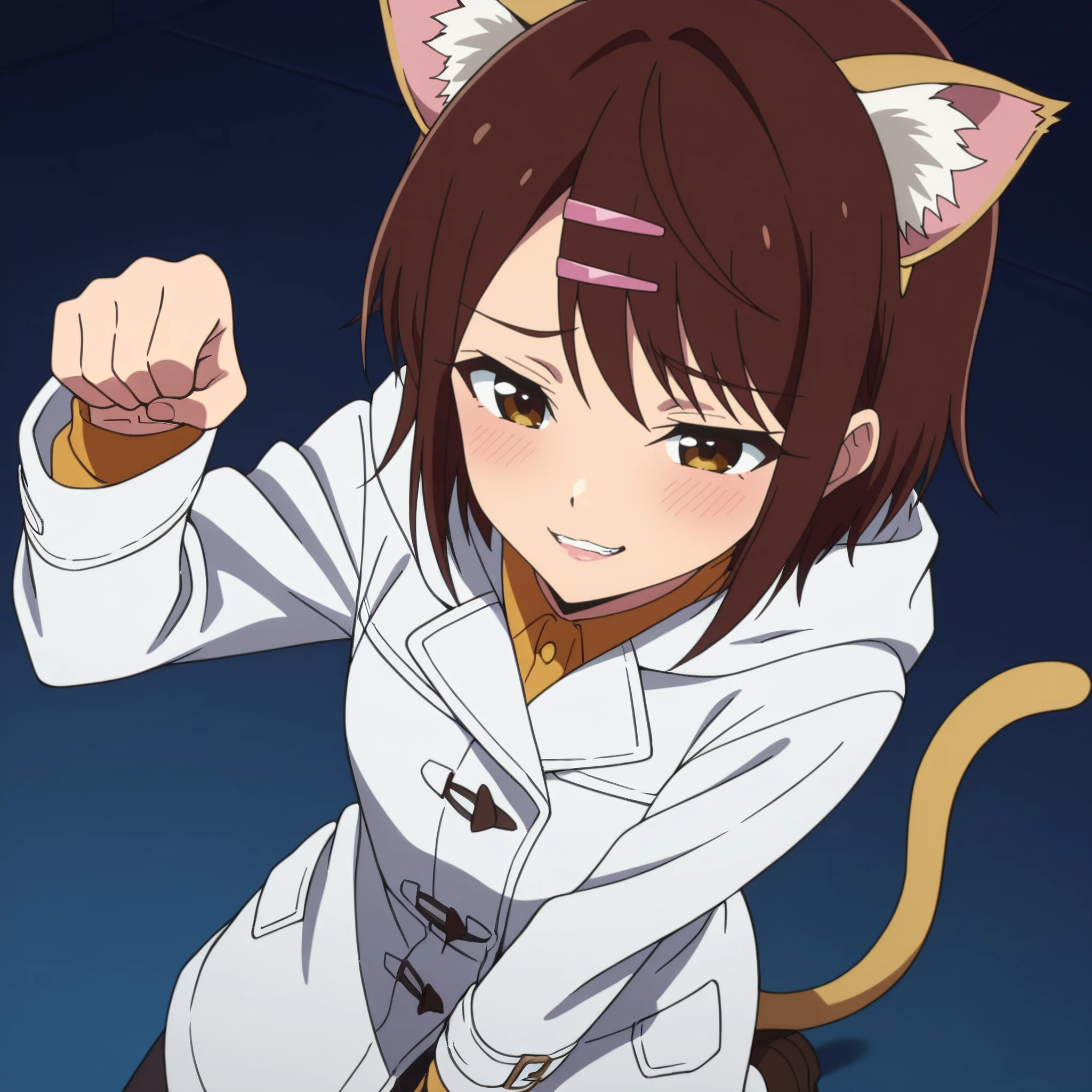 AMWCat, brown hair, animal ears, cat ears, short hair, eyebrows visible through hair, long hair, brown eyes, cat tail, tail,