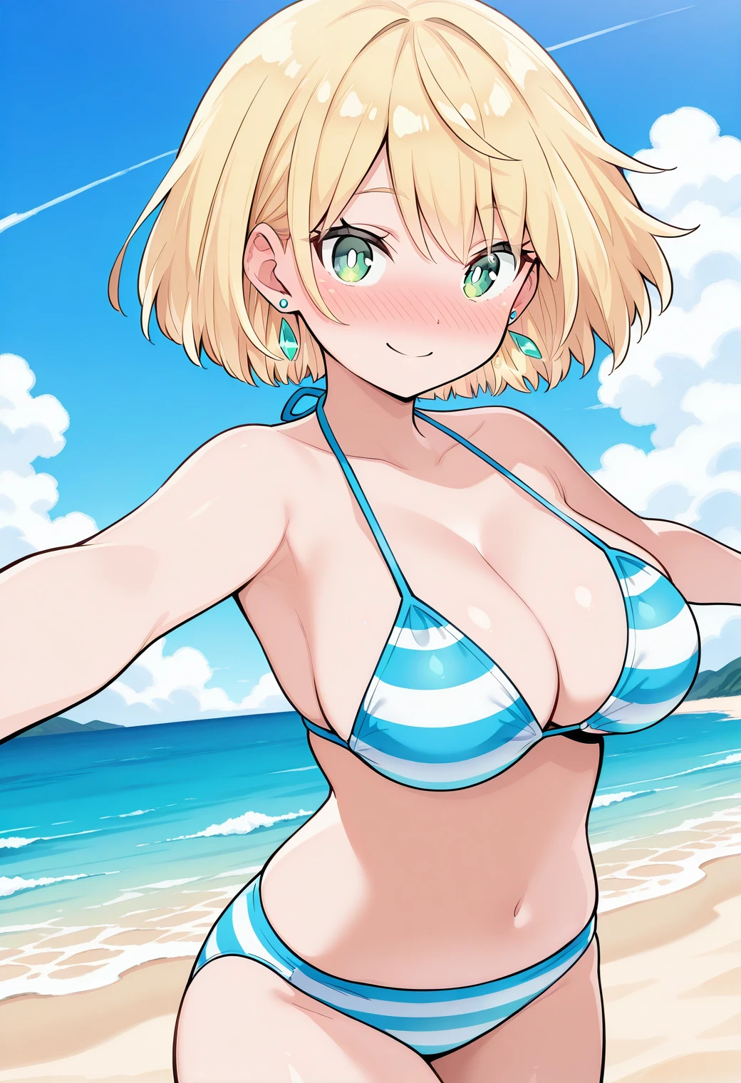 Trigger word: takinami_remon, green eyes, blonde hair, short hair, earrings,