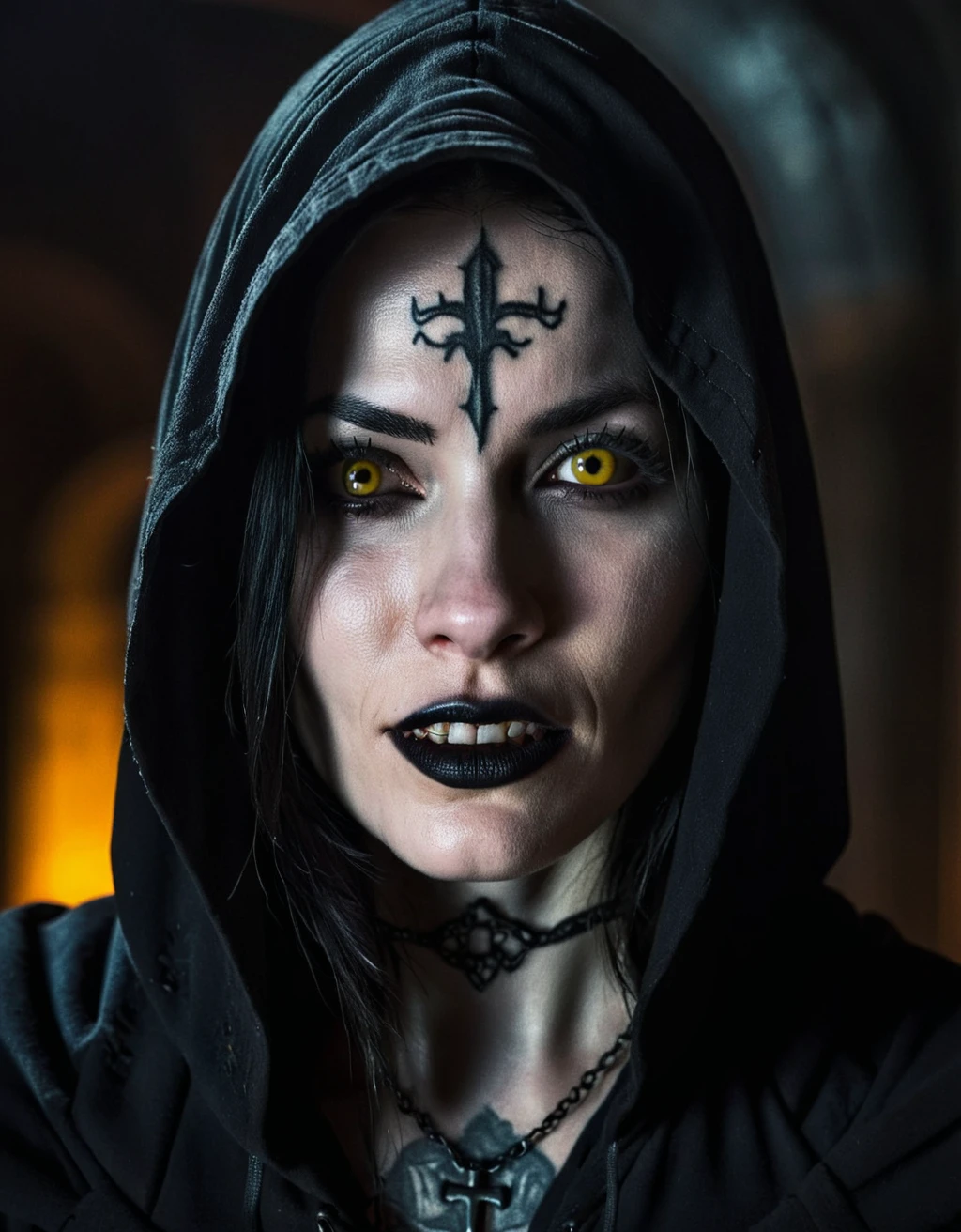 But I find that adding hooded, (blood around the mouth), yellow eyes makes it work even better. You might want to add Yellow Teeth to the negatives since putting yellow eyes in the prompt tends to make her teeth also yellow this will usualy fix that.