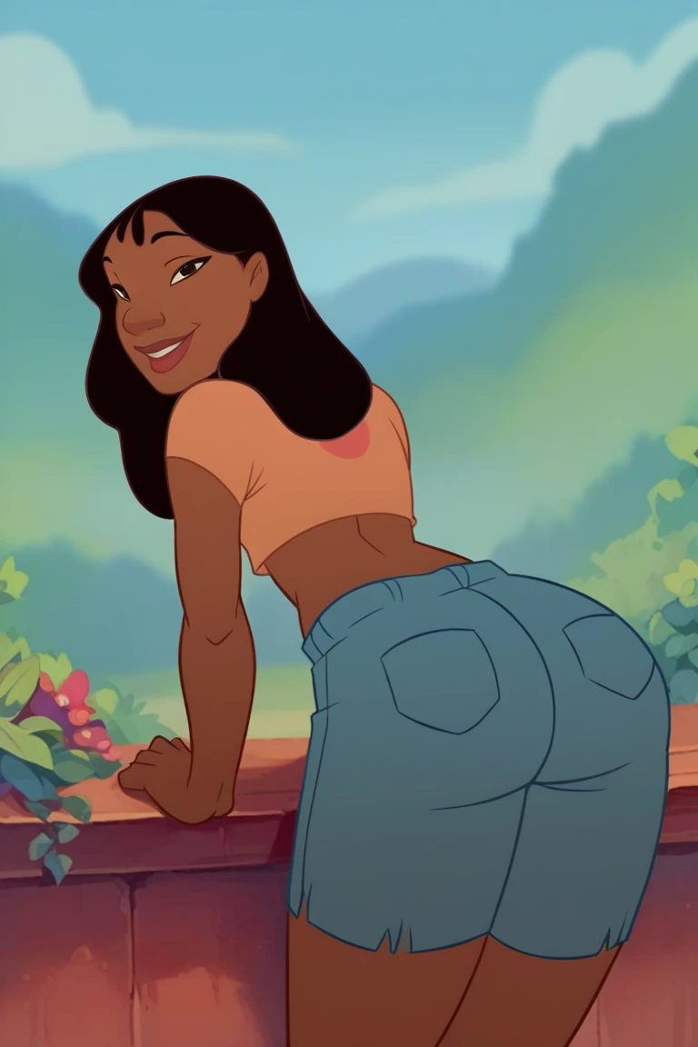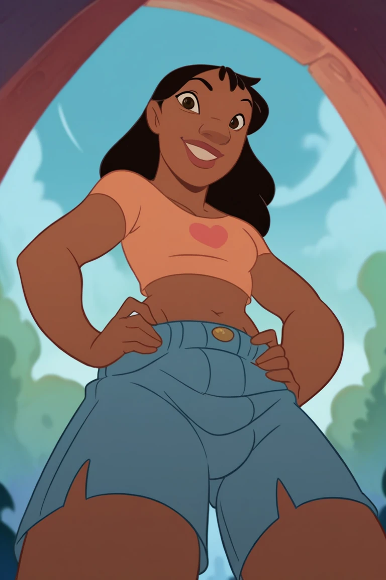 n4niP, dark-skinned female, black hair, brown eyes, lips