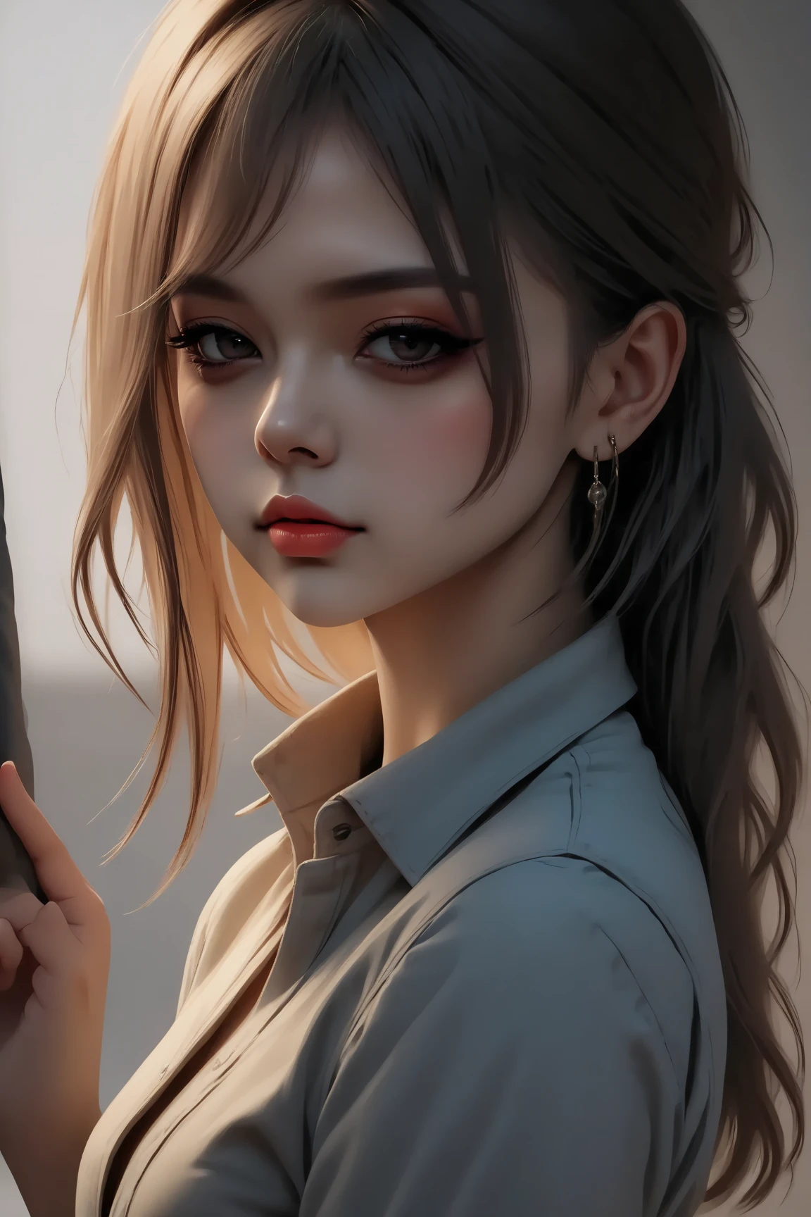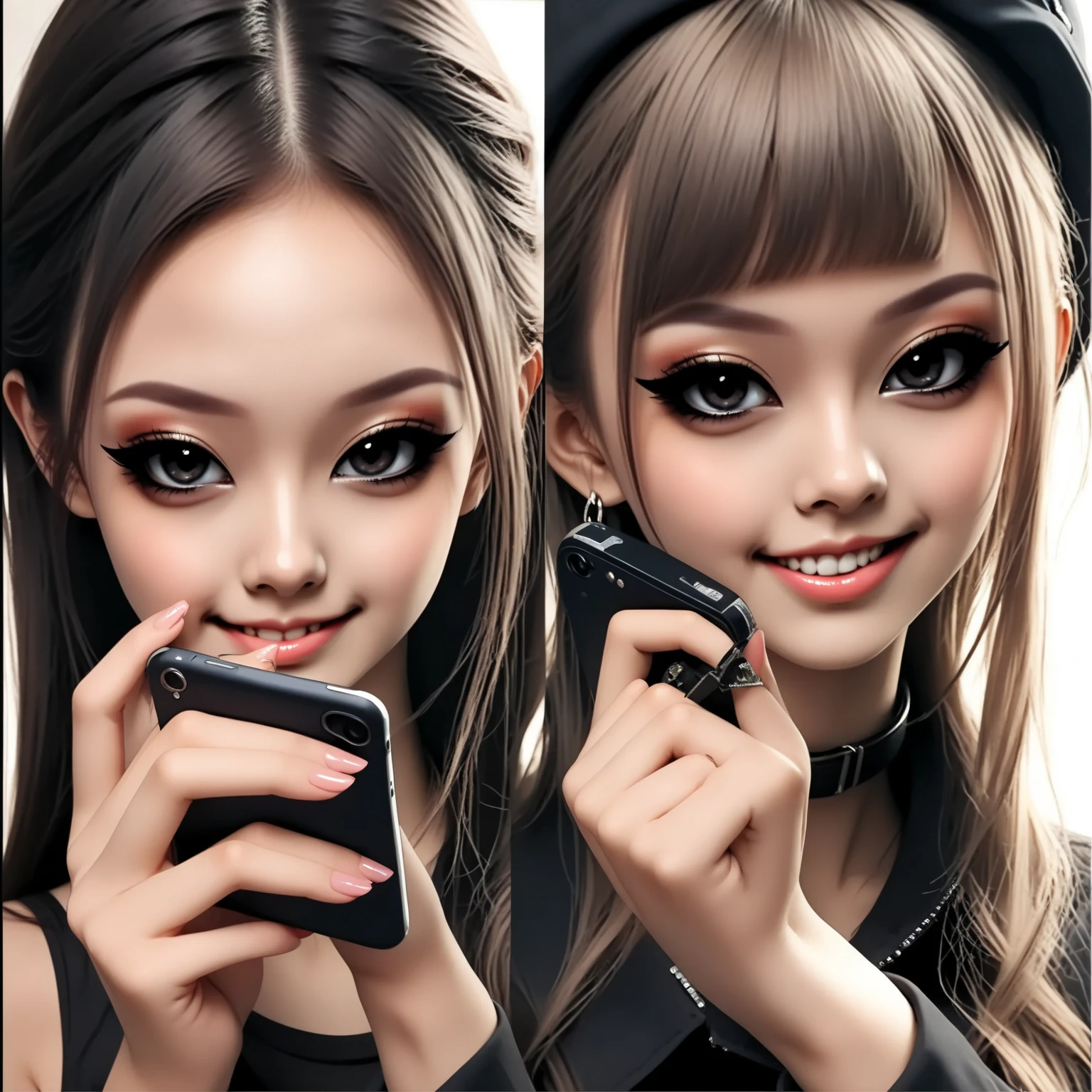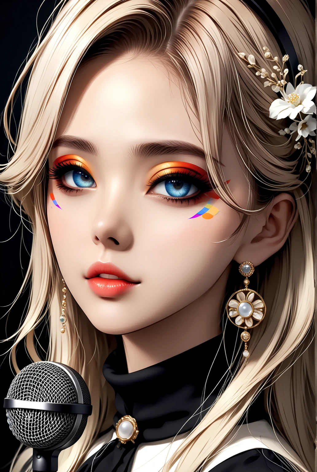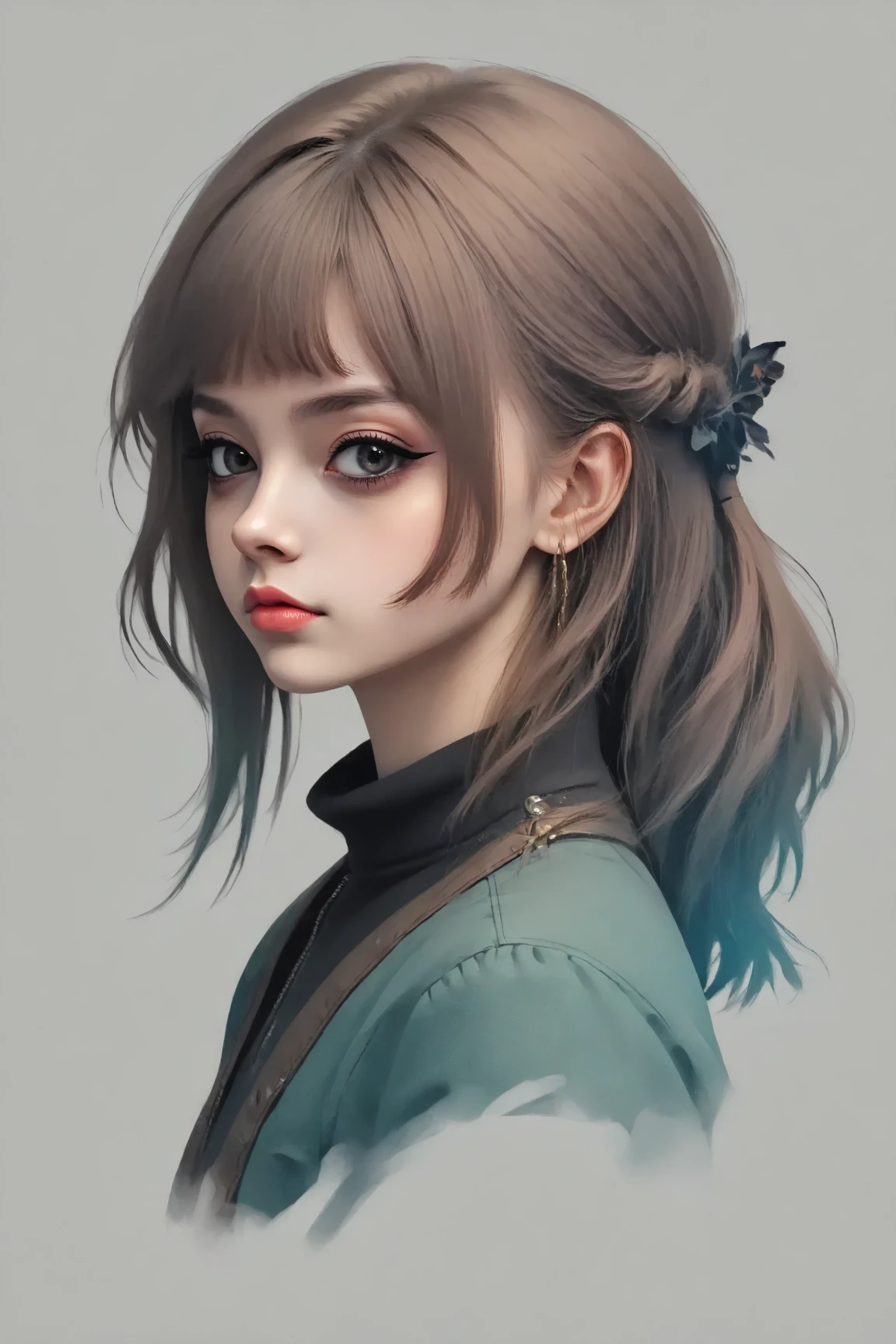 印象的な目つきの女性のクローズアップショットが捉えられています。彼女の黒髪はゆるやかなウェーブがかったスタイルで、背中に流れ落ち、複雑なデザインと真珠が付いた垂れ下がるイヤリングを着けています。彼女のメイクは大胆でドラマチックで、濃い赤のリップが彼女の青白い肌に映えます。彼女の目はスモーキーなアイメイクで強調され、眉は手入れされて埋められています。彼女は首の周りに繊細な真珠のチェーンが付いた黒いチョーカーを着けており、彼女のアンサンブルに優雅さを加えています。照明は柔らかく拡散しており、彼女の顔の輪郭とイヤリングの複雑なディテールを際立たせています。画像のスタイルはファンタジーやゴシック美学を彷彿とさせ、神秘と陰謀の感覚を呼び起こします。
