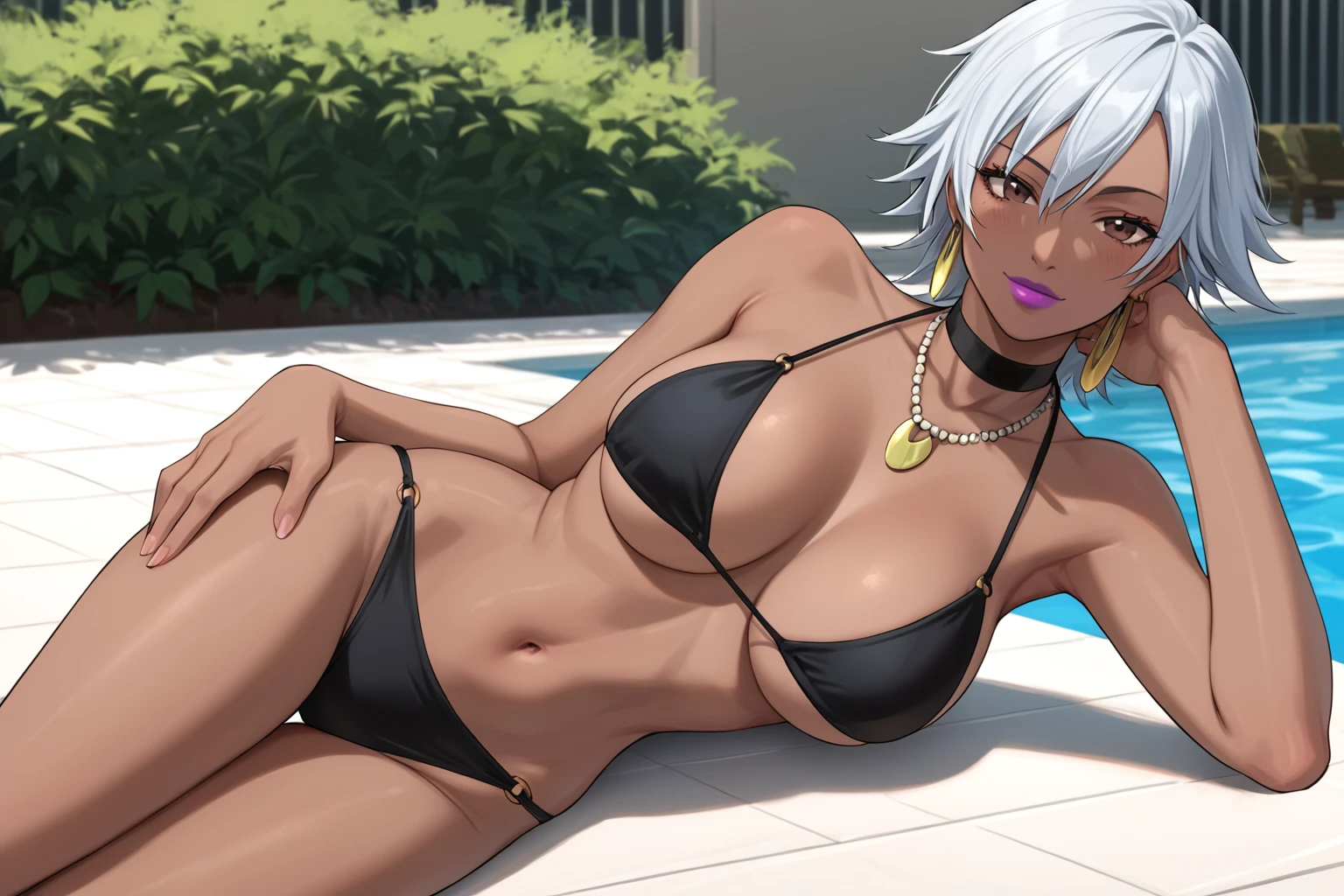 Base Prompt: ororo munroe, dark-skinned female, short hair, white hair, brown eyes