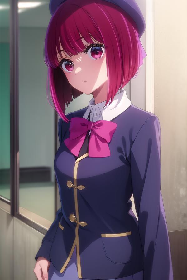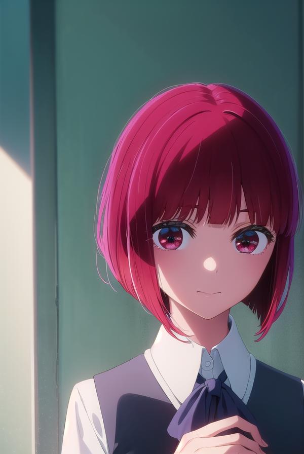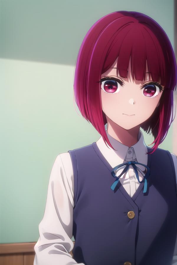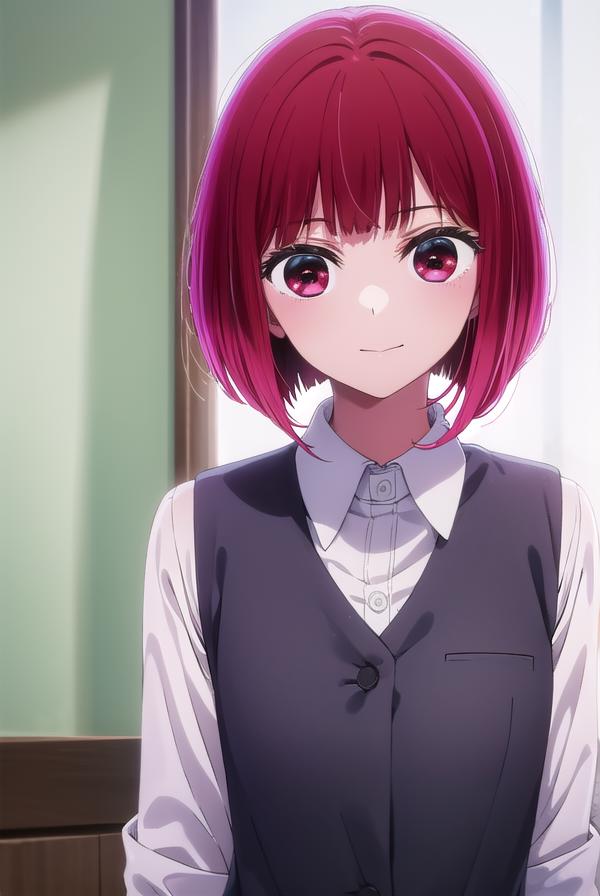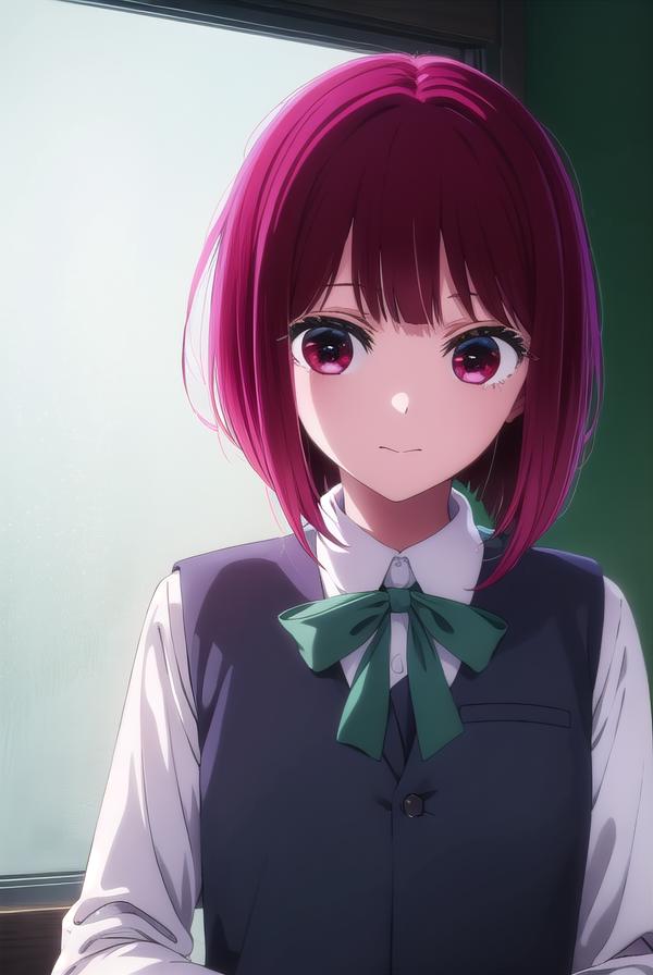kana arima, bob cut, (red eyes:1.5), red hair, short hair,