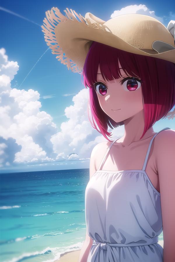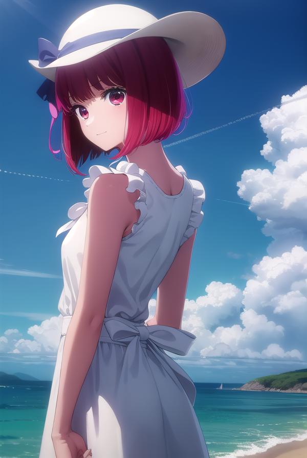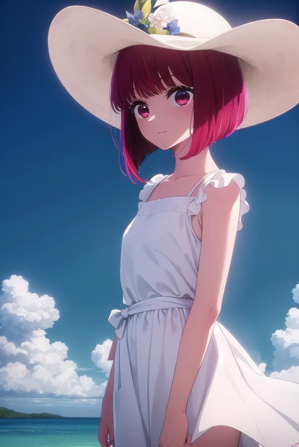 hat, dress, ribbon, sleeveless, white dress, sleeveless dress, white headwear, sun hat, sundress,