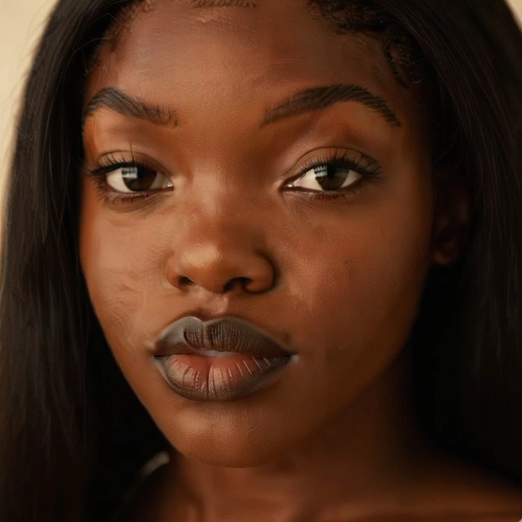 • What it does: Generates consistent female character with brown skin, long black hair, doe eyes