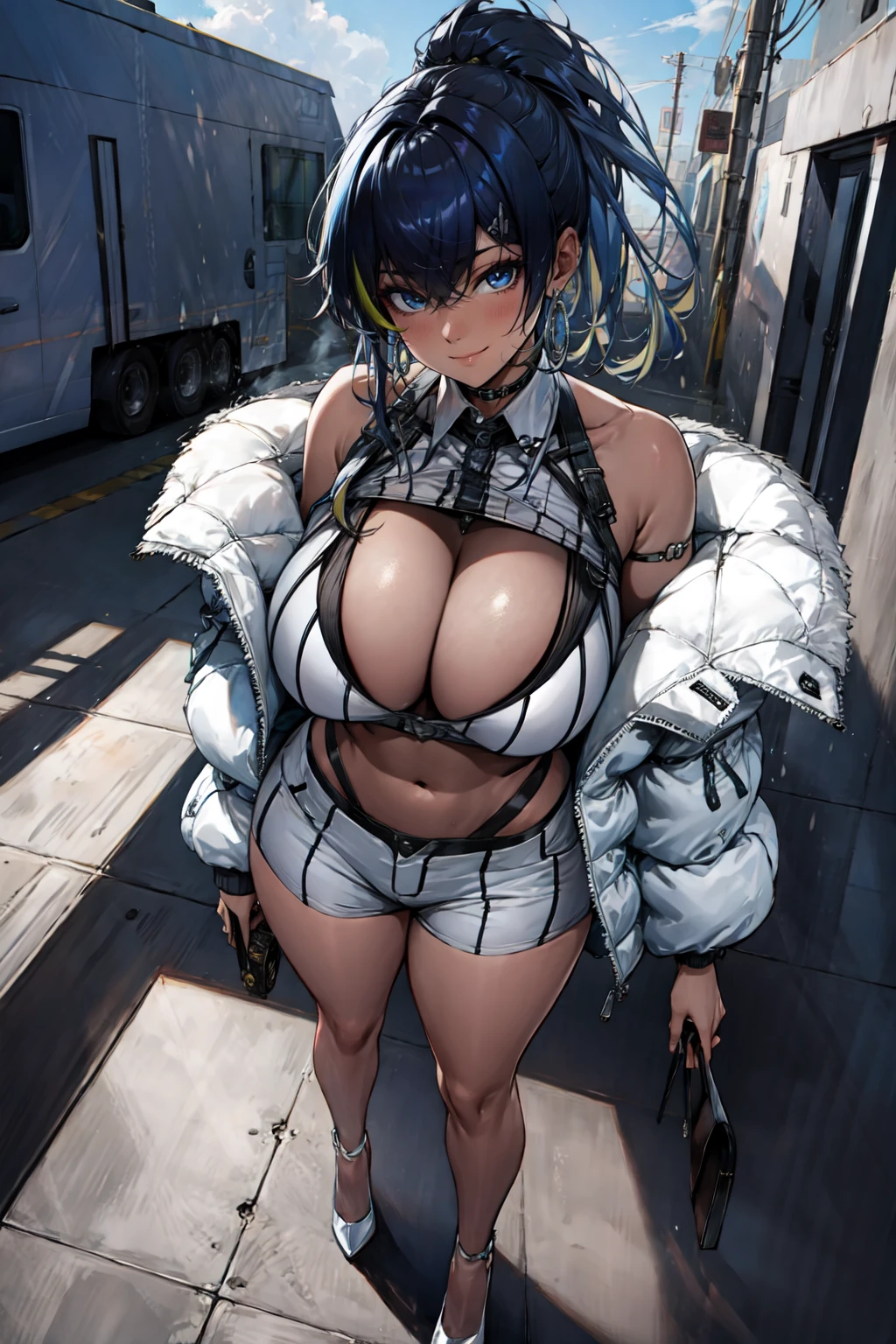 shirt,jacket,coat,sleeveless shirt,black necktie,necktie between breasts,white shorts,thighlet,thigh strapAs always, if you like the model and my work, please to drop a positive/negative review and share your work. It's the best way to improve myself. You can support me on Ko-Fi & SubscribeStar for more contents.