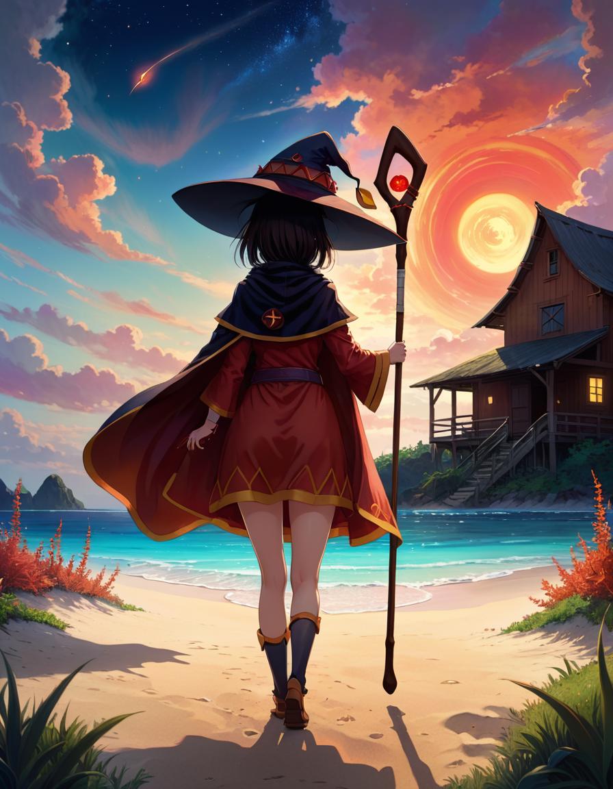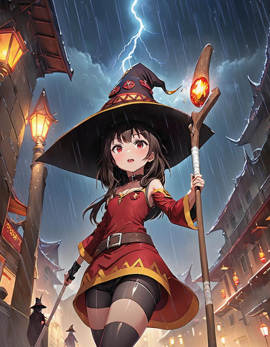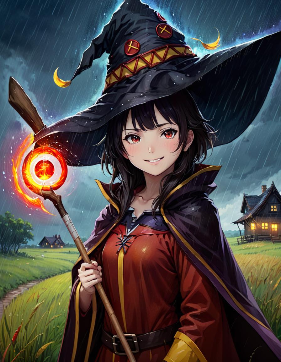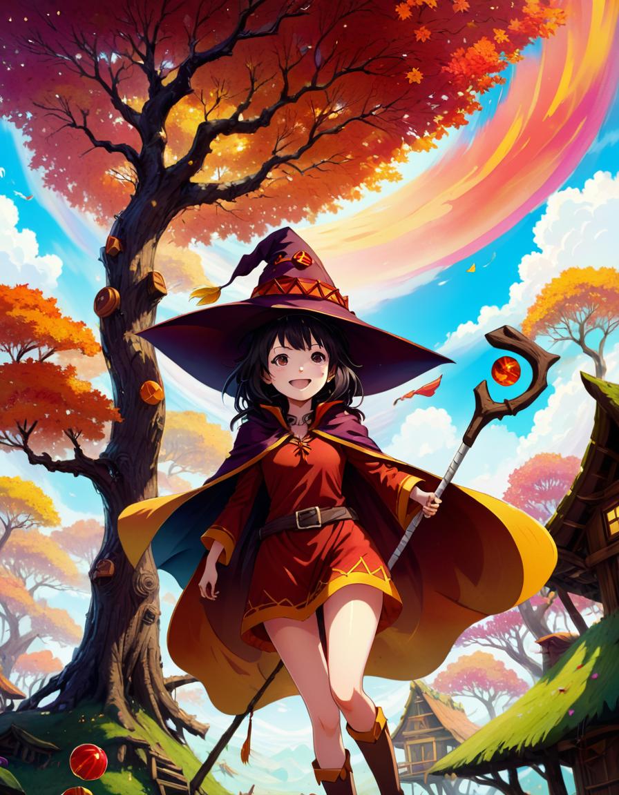 The staff itself might get a bit weird, but inpainting it using only "staff" as a prompt, without mentionning megumin, should give better result.