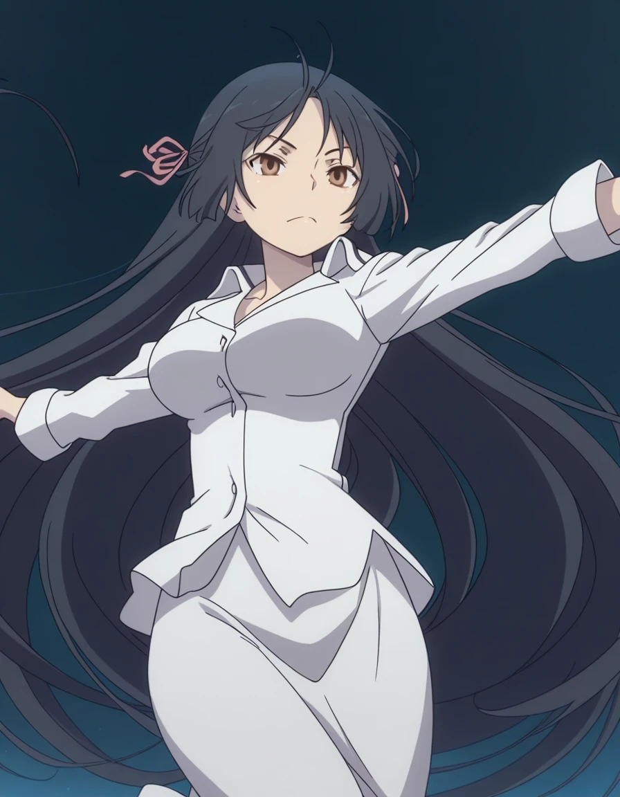 akio fudou, long hair, black hair, brown eyes, very long hair, hair ribbon, half-updo, mature female, breasts, anime screencap