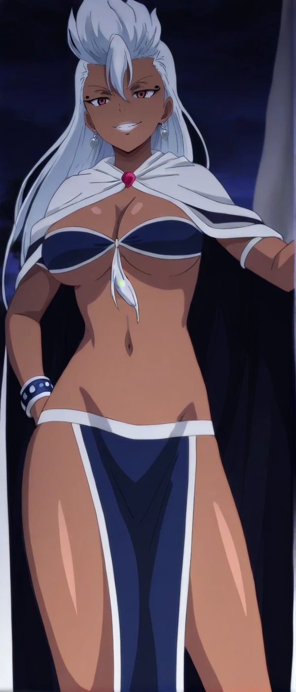 anime coloring, cape, cleavage, jewelry, earrings, bracelet, bikini, pelvic curtains, earrings,