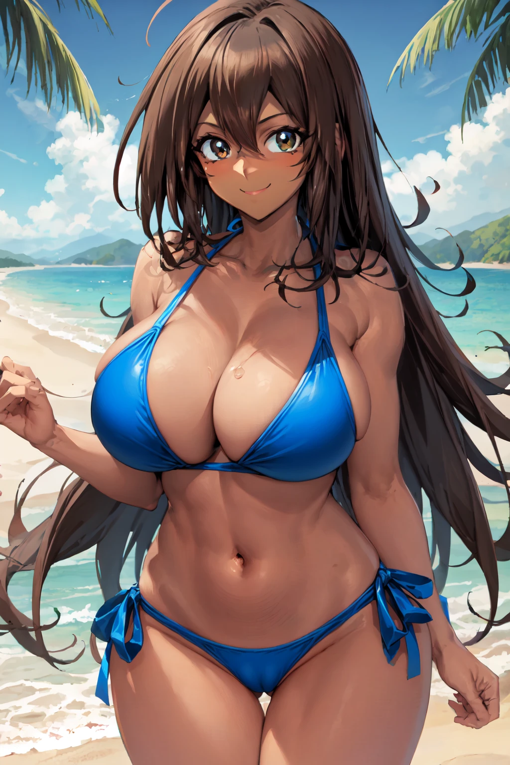 Activation tag: mana_yugioh; use along with (long hair:0.8), medium hair, brown hair, dark skin, dark-skinned female, green eyes, and large breasts. Also, place wizard hat, blue headwear, and blonde hair in the negative prompt.
