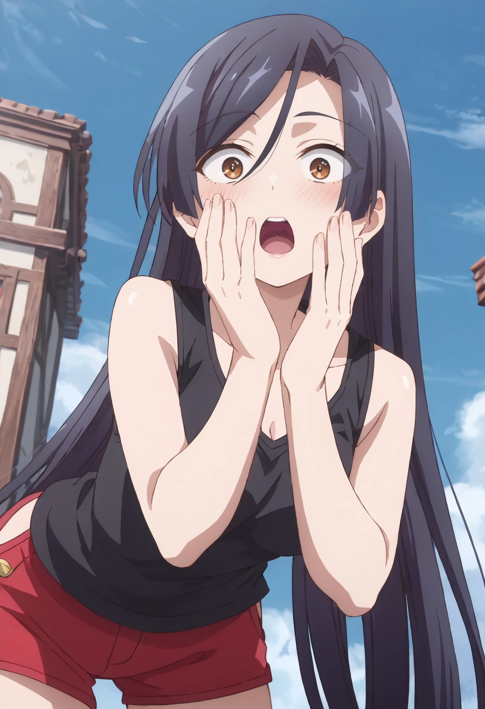 JHNShirley, long hair, black hair, brown eyes, very long hair, hair between eyes,