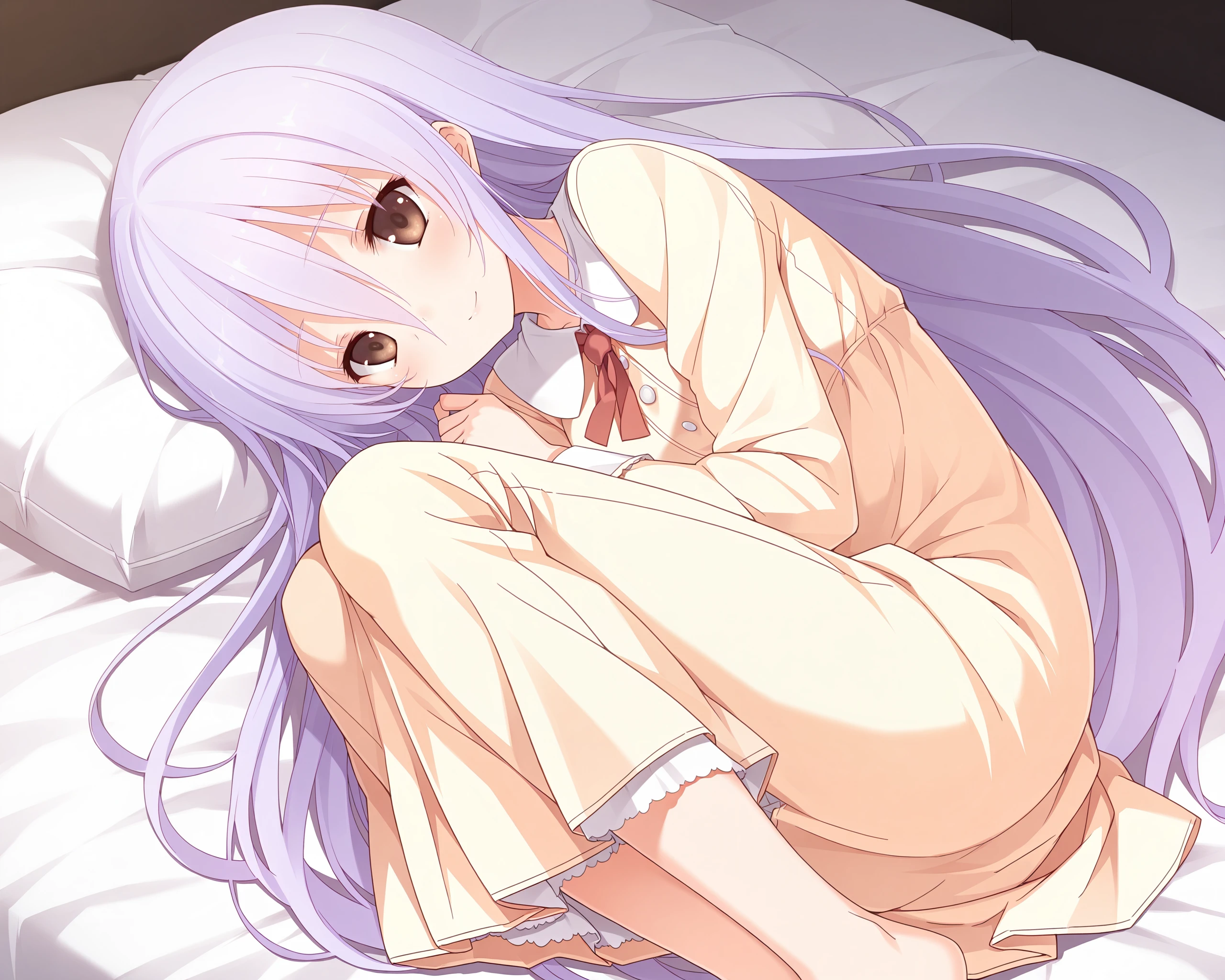 solo,1girl,lilac_hair,hair between eyes,very_long_hair,brown eyes,